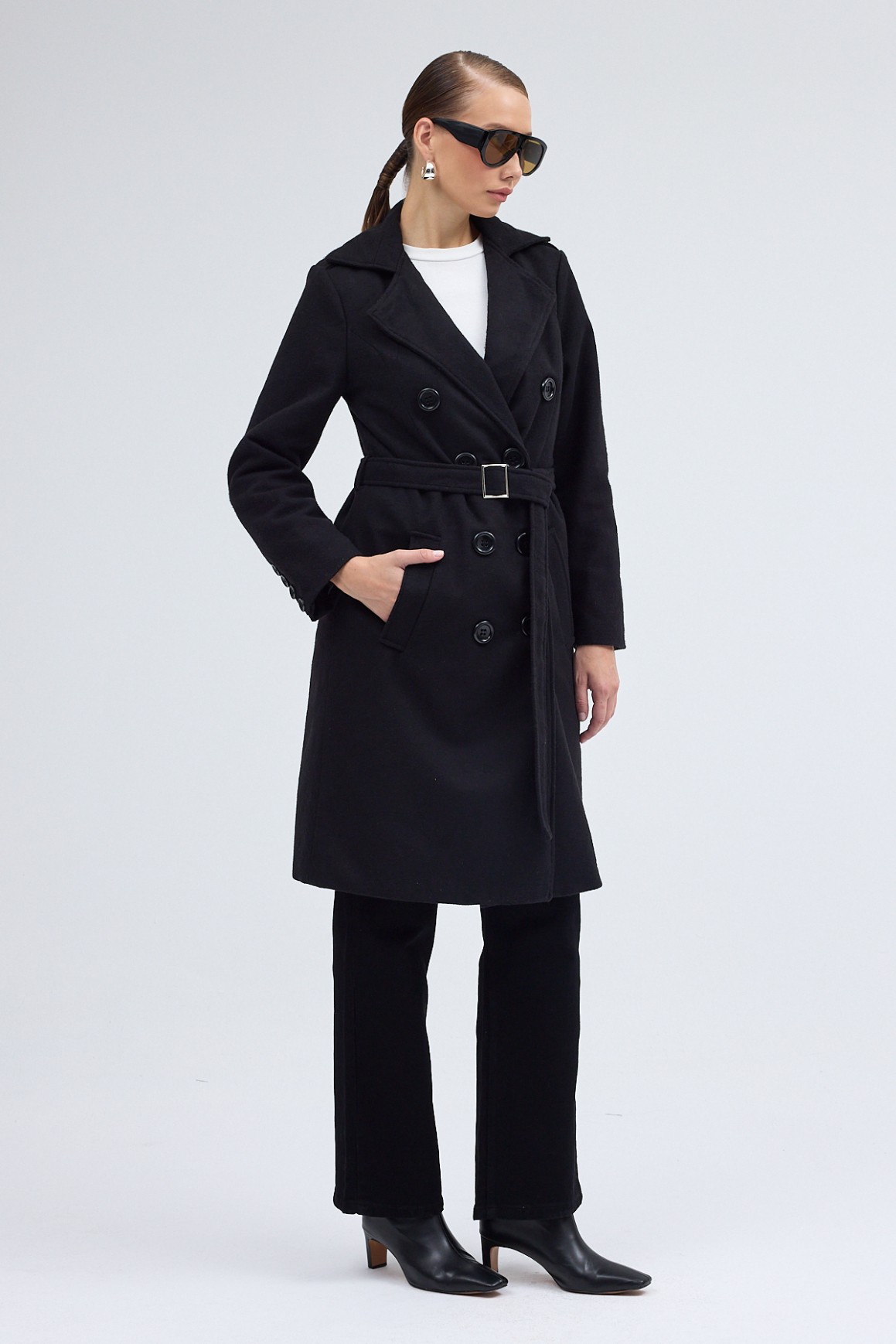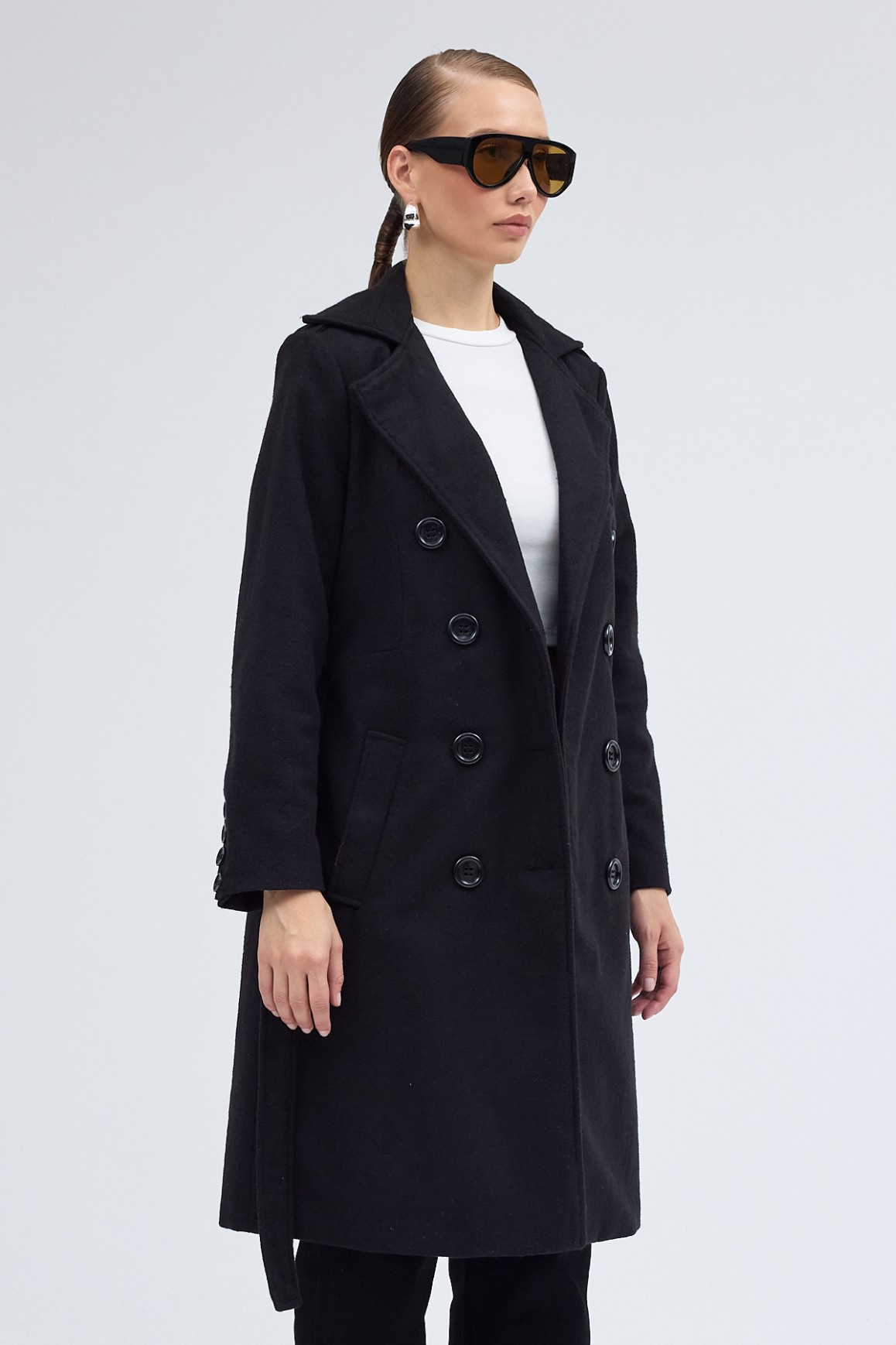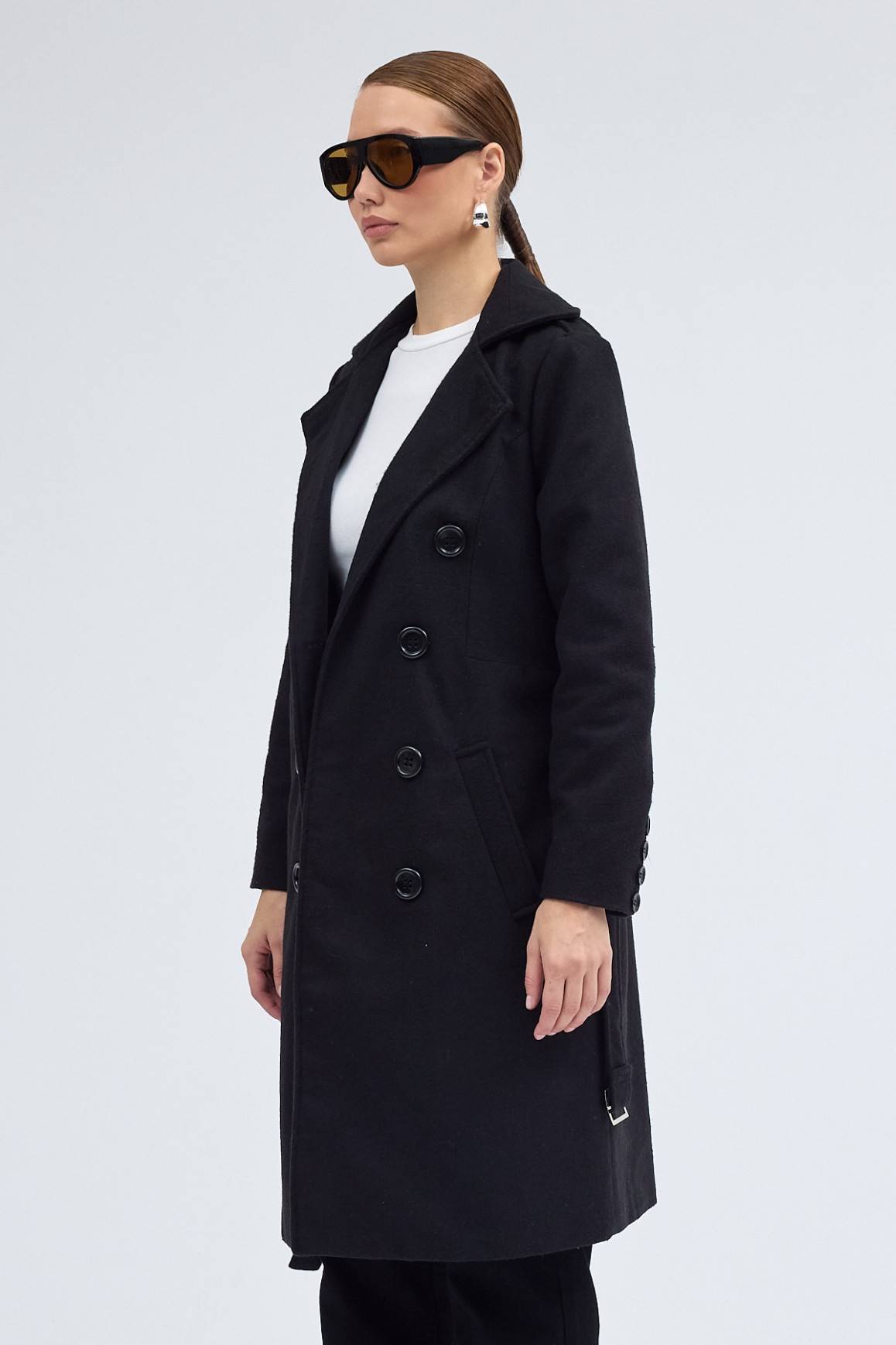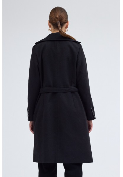 • Aksesuarlı Kaşe Kaban Kemer Detaylı