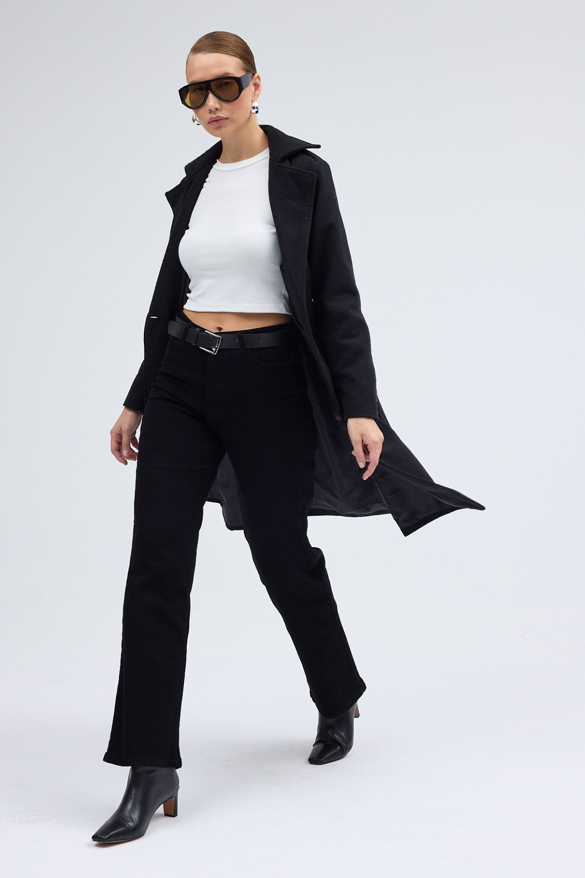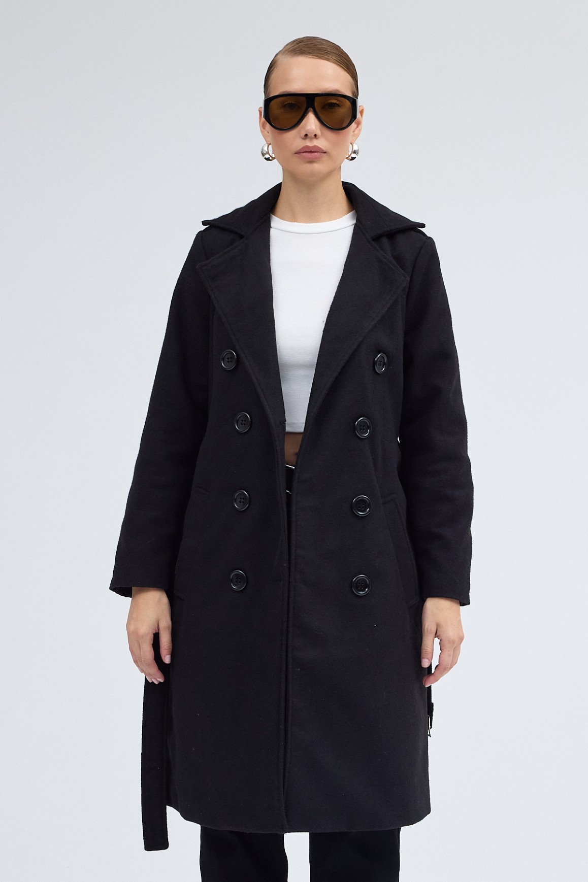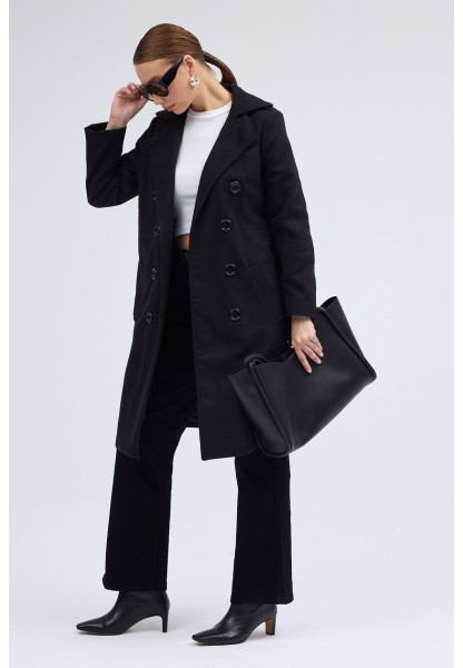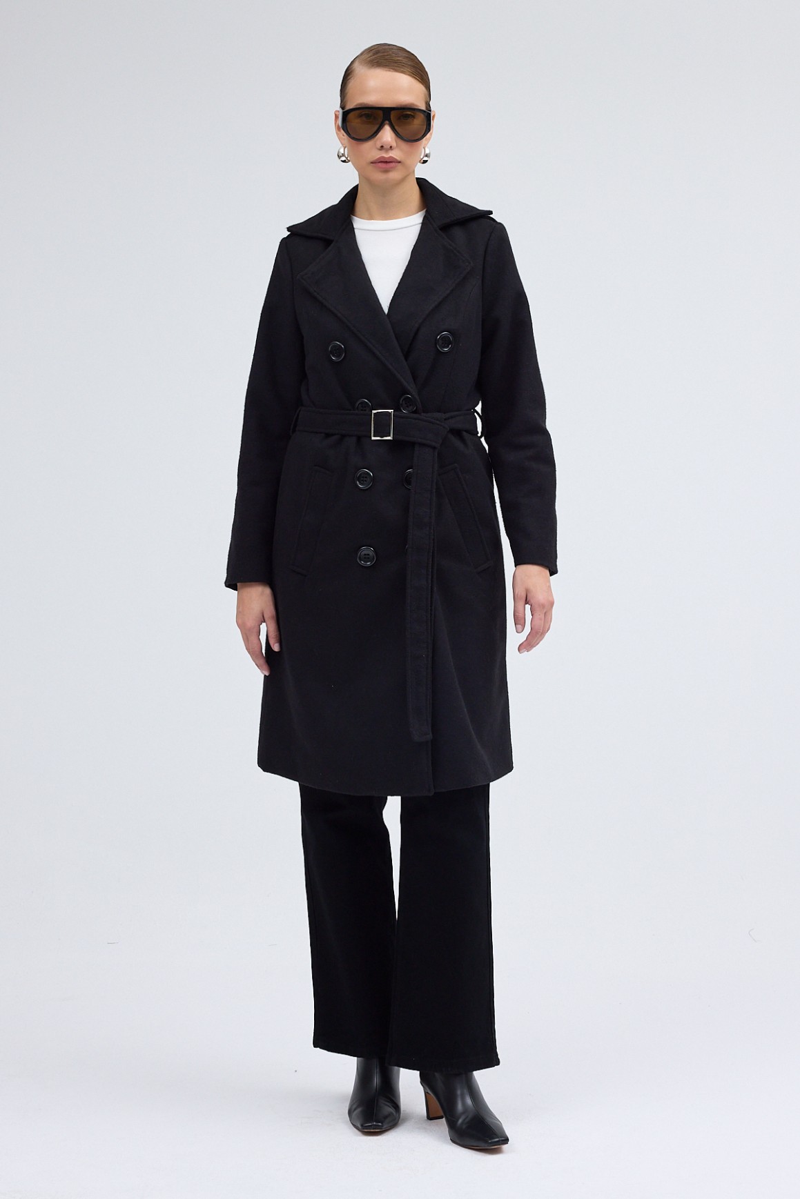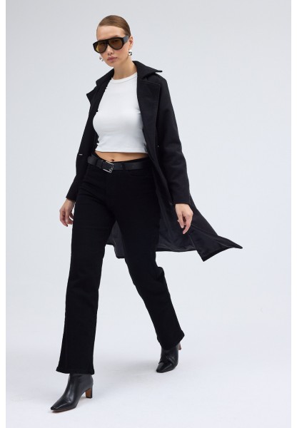 • Aksesuarlı Kaşe Kaban Kemer Detaylı