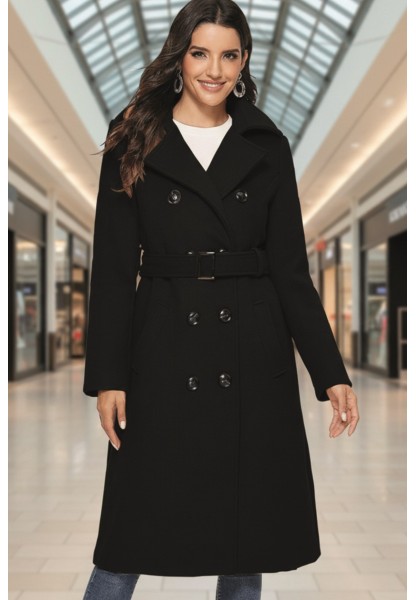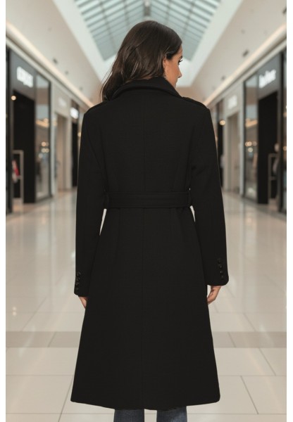 • Aksesuarlı Kaşe Kaban Kemer Detaylı
