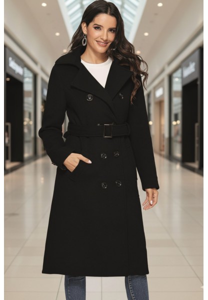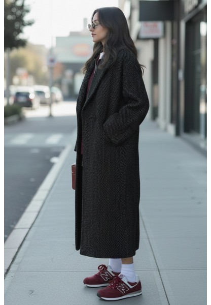 • Balık Sırtı Detaylı Astarlı Kışlık Kadın Kaşmir Uzun Kaban