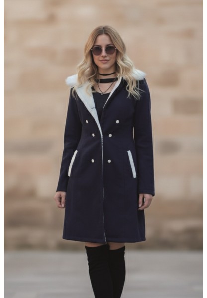 • Balık Sırtı Detaylı Astarlı Kışlık Kadın Kaşmir Uzun Kaban