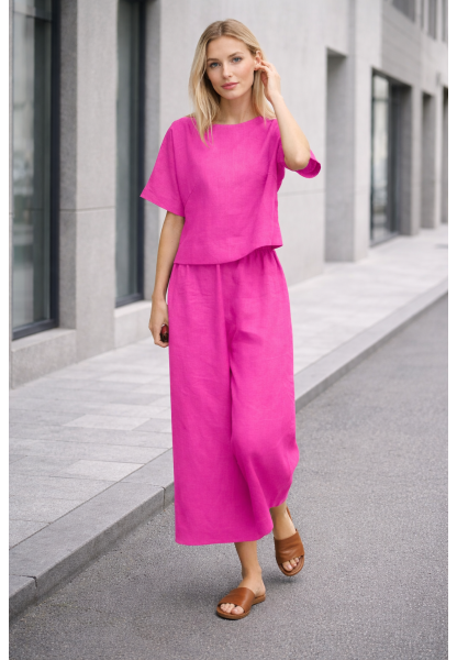 • Büzgülü Gömlek Yaka Keten Kadın Elbise