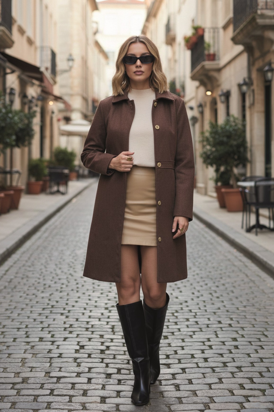 • Dikiş Detaylı Tasarım Kaşe Kaban