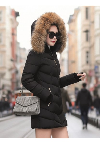 • Eldiven Detaylı Siyah Kapüşonlu Orta boy Kürklü Şişme Mont co121syh
