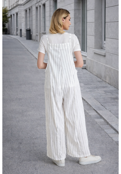 • Günlük Askılı Bol Kesim Yazlık Kadın Desenli Beyaz Tulum