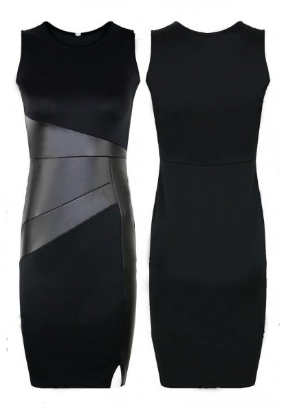 Günlük Deri Detaylı Kolsuz Kadın Elbise