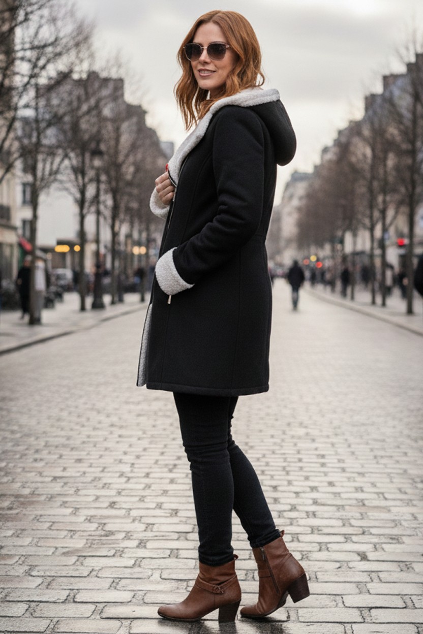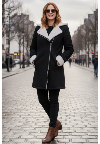 • Günlük Kadın Siyah Kaşe Kışlık Kaban