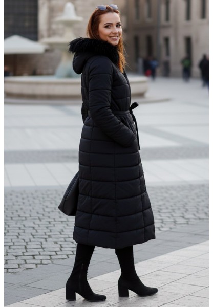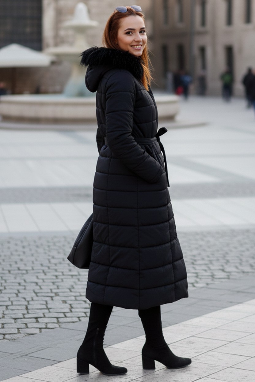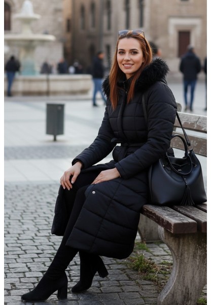 • Günlük Kışlık Tam Boy Şişme Kadın Kürklü Siyah Mont