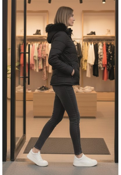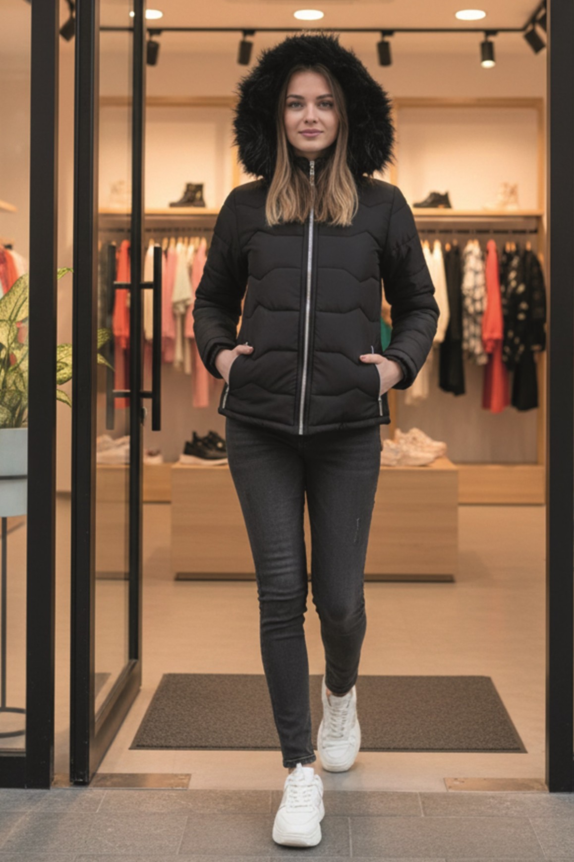 • Günlük Kürklü Kadın Şişme Kadın Mont