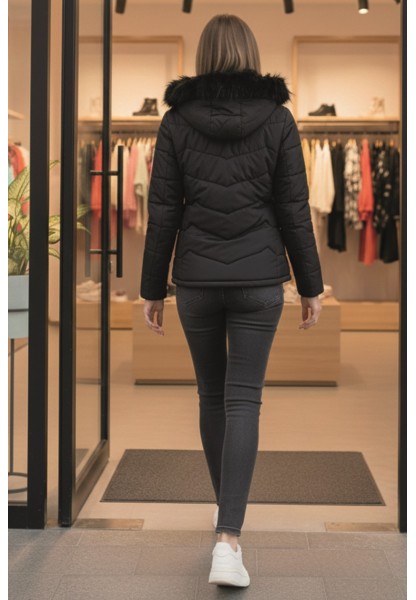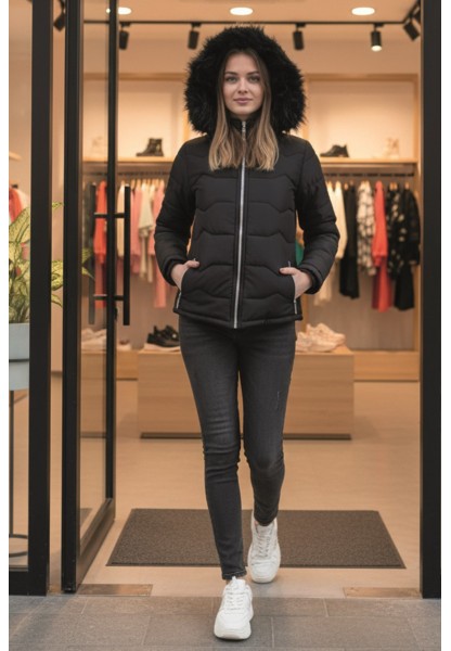 Günlük Kürklü Kadın Şişme Kadın Mont