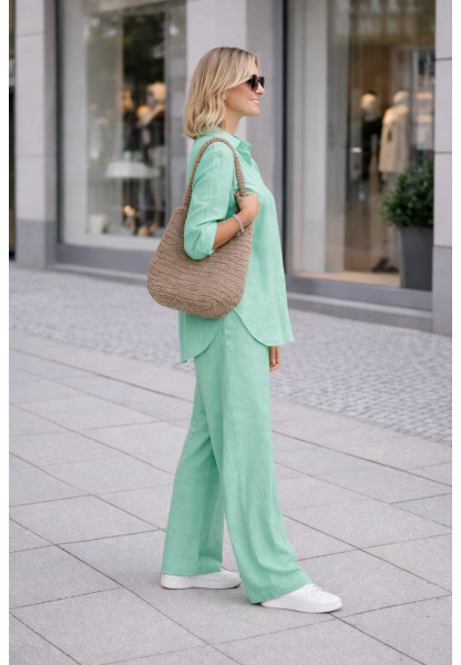 • Günlük Su Yeşili Keten İkili Takım Alt Üst