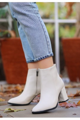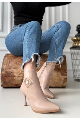 Biya Bej Cilt Topuklu Bot