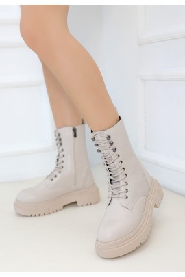 Caxa Bej Cilt Bağcıklı Bot