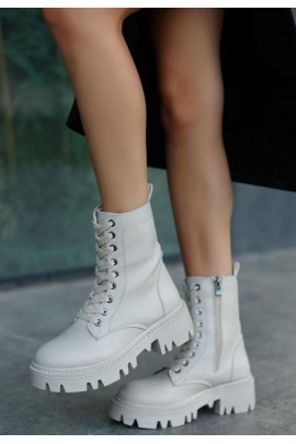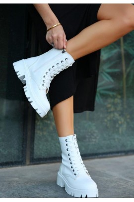 Flona Beyaz Cilt Bağcıklı Bot