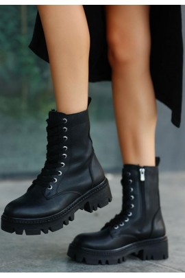 Bria Siyah Cilt Bağcıklı Bot