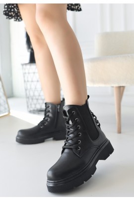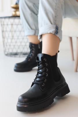 Flona Siyah Cilt Bağcıklı Bot