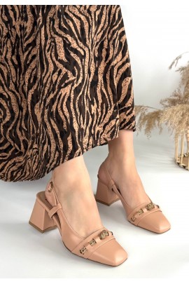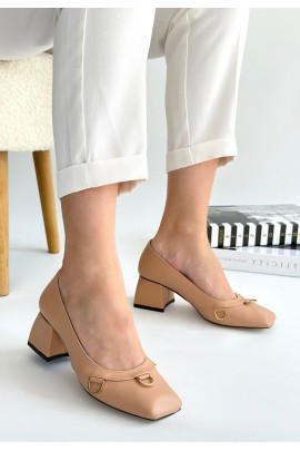 Kalyt Bej Cilt Topuklu Ayakkabı