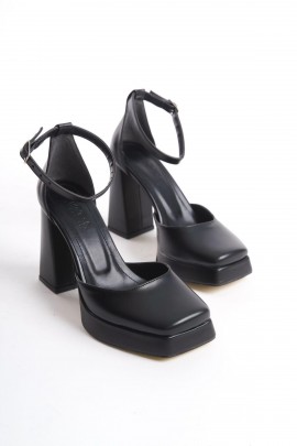 Kawer Siyah Cilt Topuklu Ayakkabı