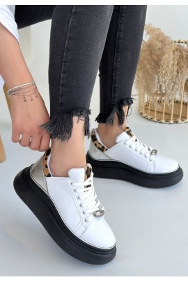 Loora Beyaz Rugan Desenli Topuklu Bot