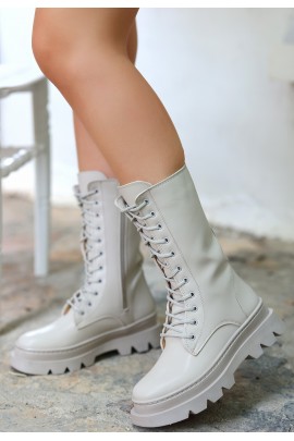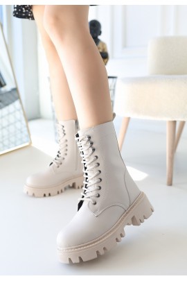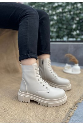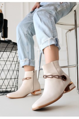 Menta Bej Cilt Fermuar Aksesuarlı Bot