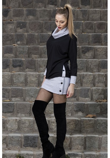 • Kışlık Düğme Detaylı Boğazlı Şık Kadın Elbise