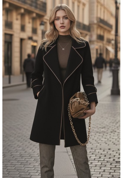 • Yaka Detaylı Büyük Düğmeli Kaşe Kaban