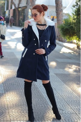 Kışlık Kürklü Kaşe Kadın Kaban