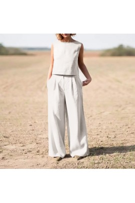 Keten Günlük Pantolon Düğmeli