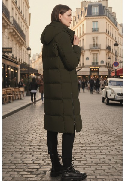 Kadın Uzun Kışlık İçi Elyaflı Astarlı Yan Fermuar Detaylı Şişme Mont