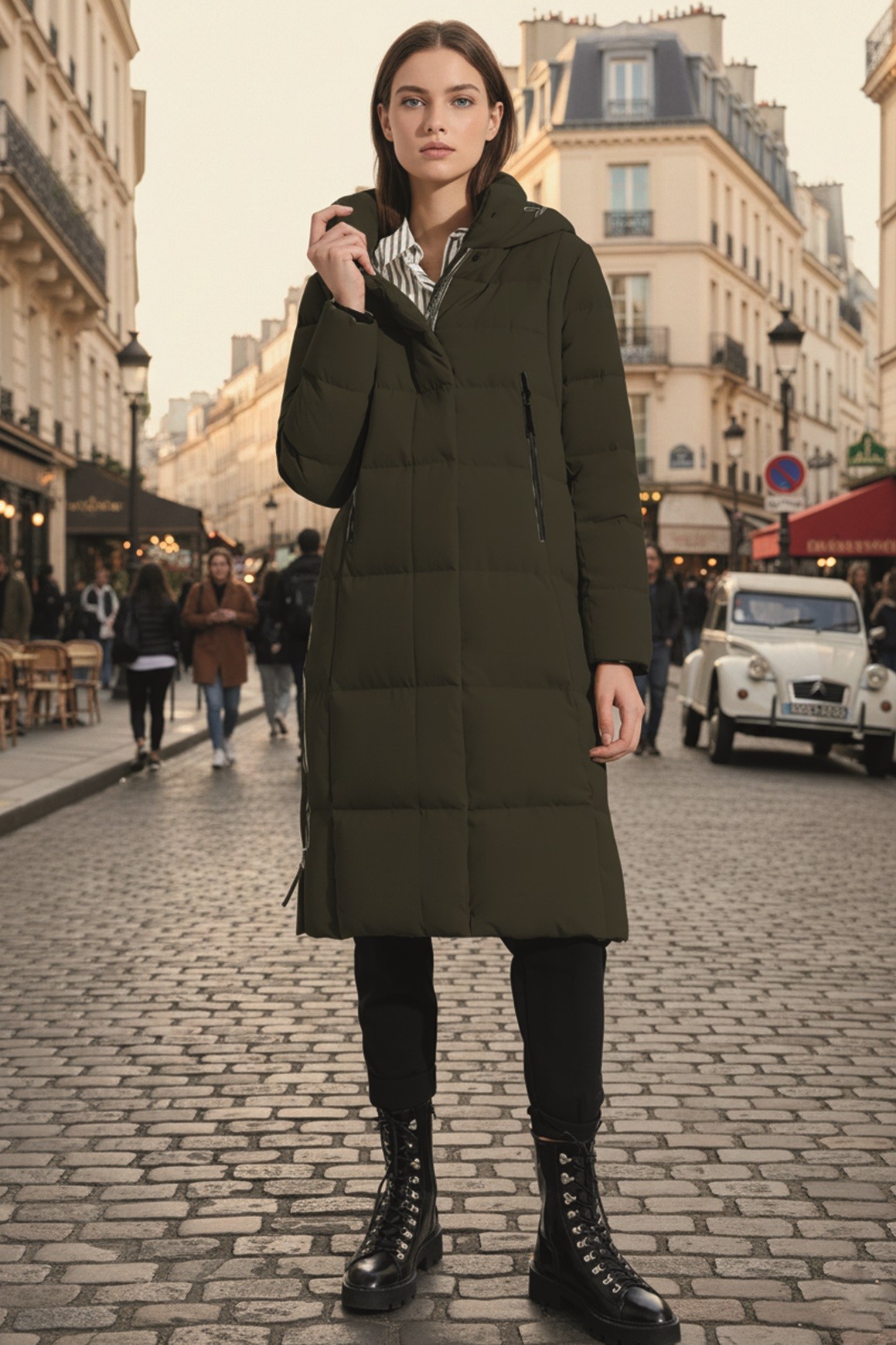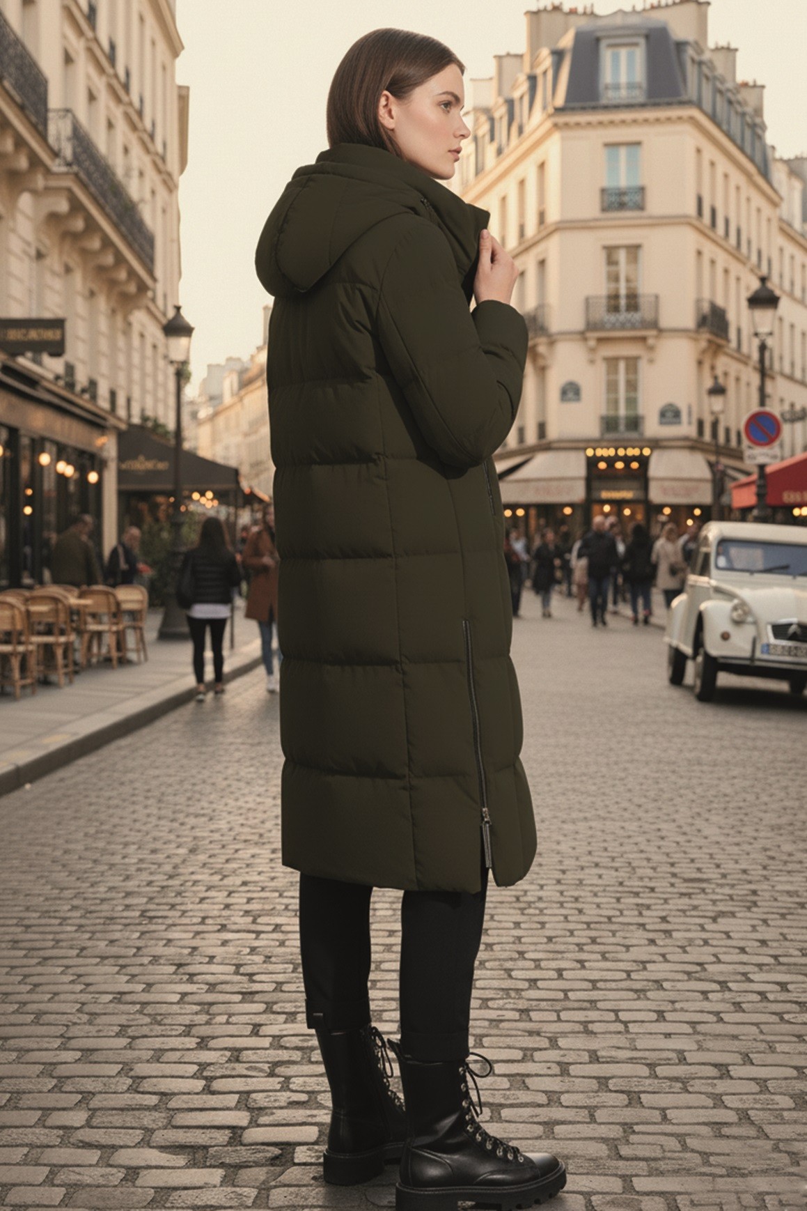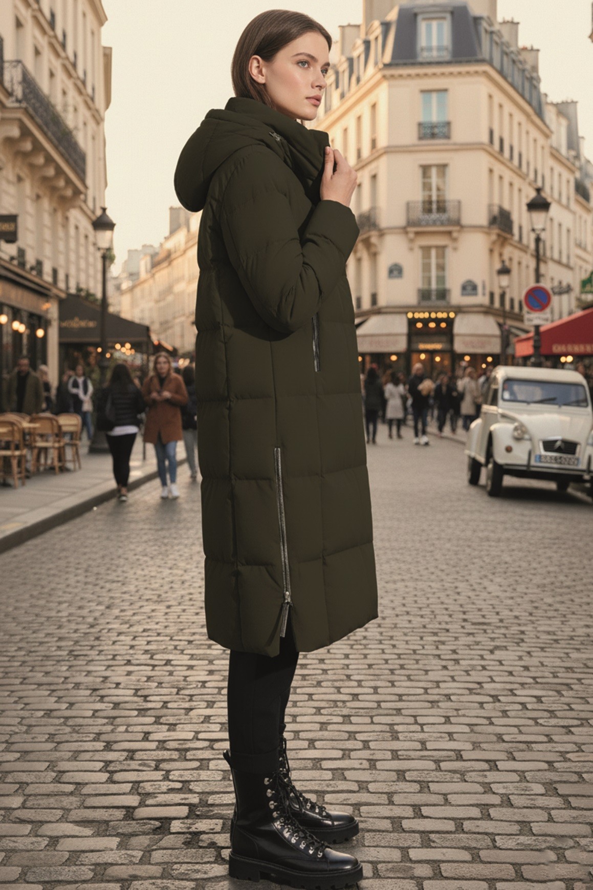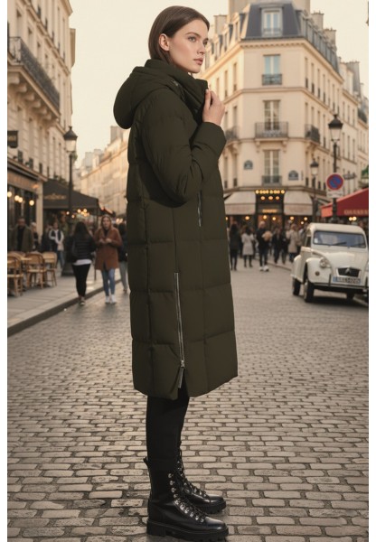 • Kadın Uzun Kışlık İçi Elyaflı Astarlı Yan Fermuar Detaylı Şişme Mont