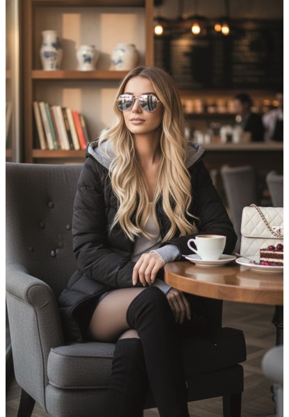 • Kapüşonlu Eldiven Detaylı Kışlık Kadın Şişme Mont