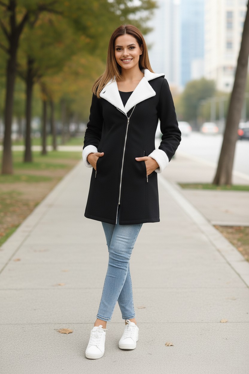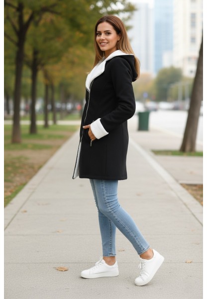 • Kapüşonlu Kaşmir Kaşe Kadın Kaban