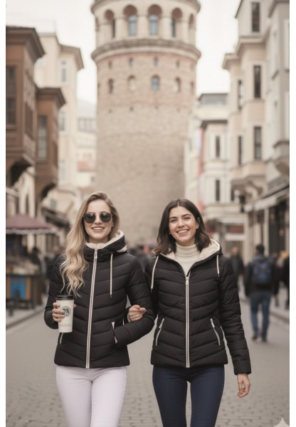 • Kapüşonlu Kışlık Kadın Şişme Kısa Mont