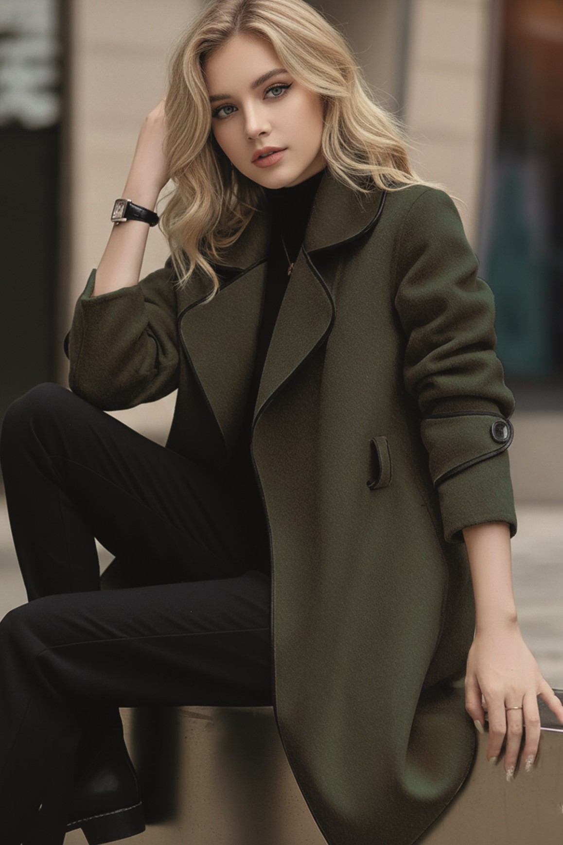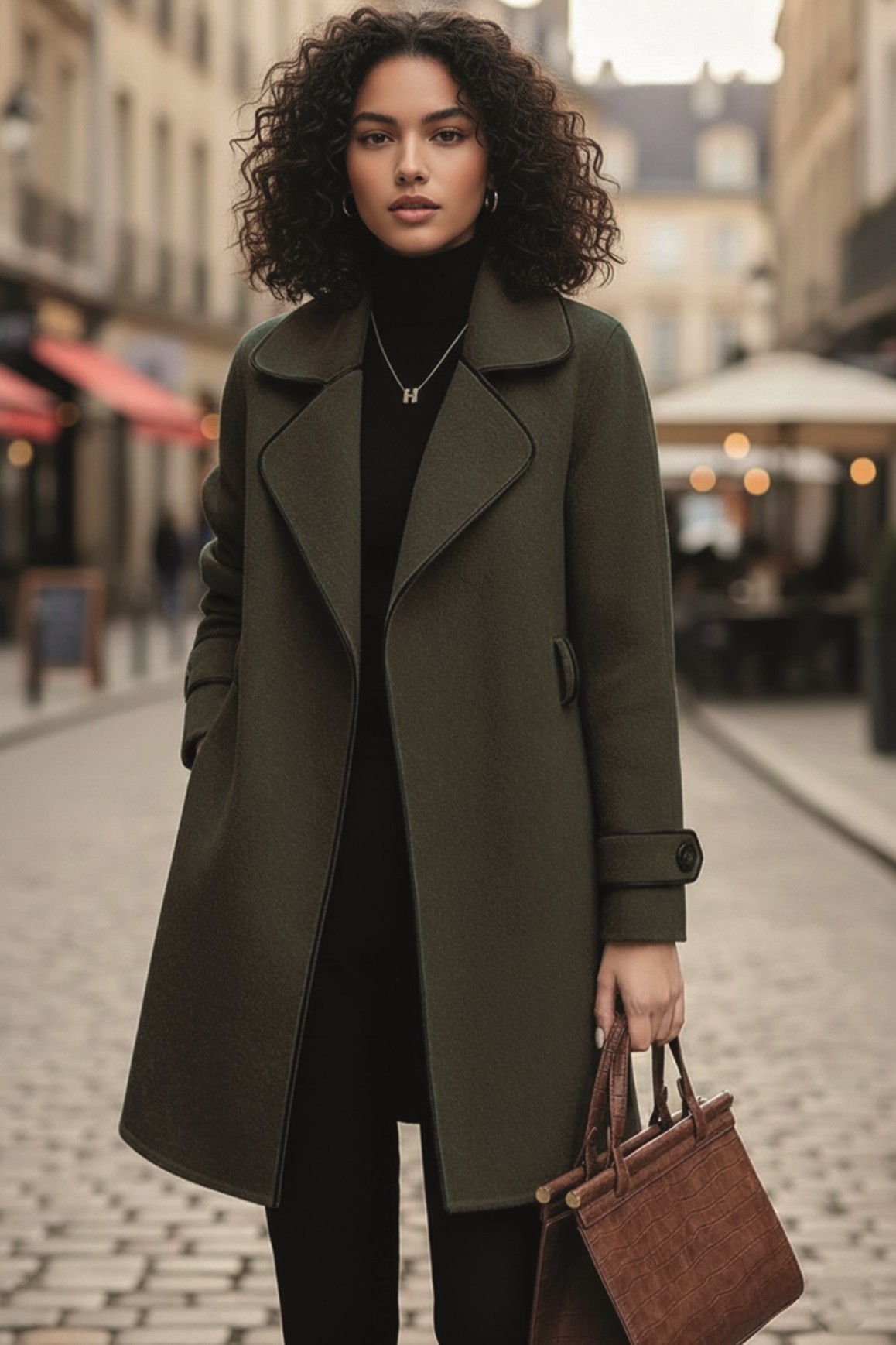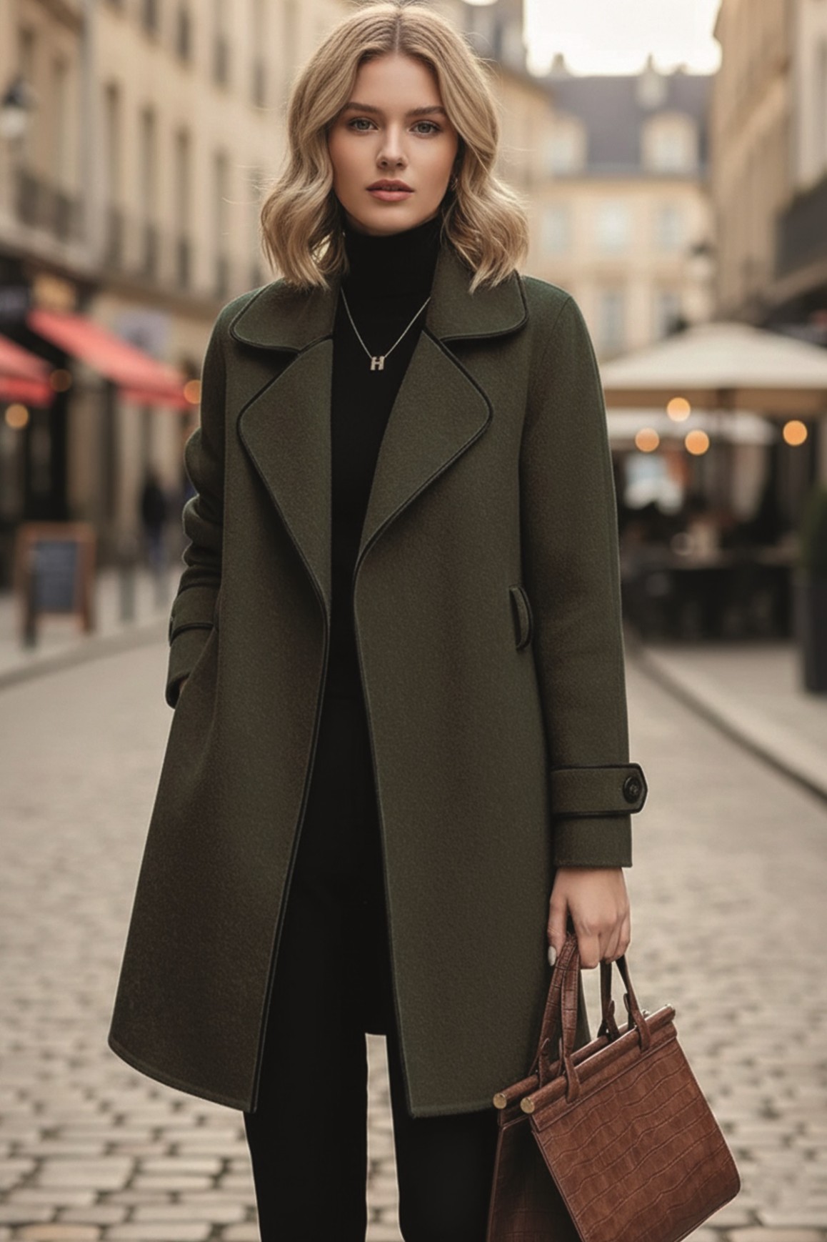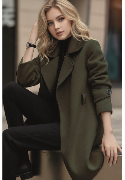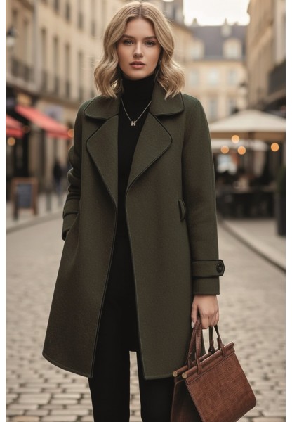 • Kaşe Kadın Şık Tasarım Yaka Kaban ve Kemer