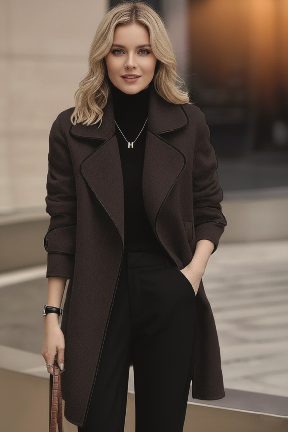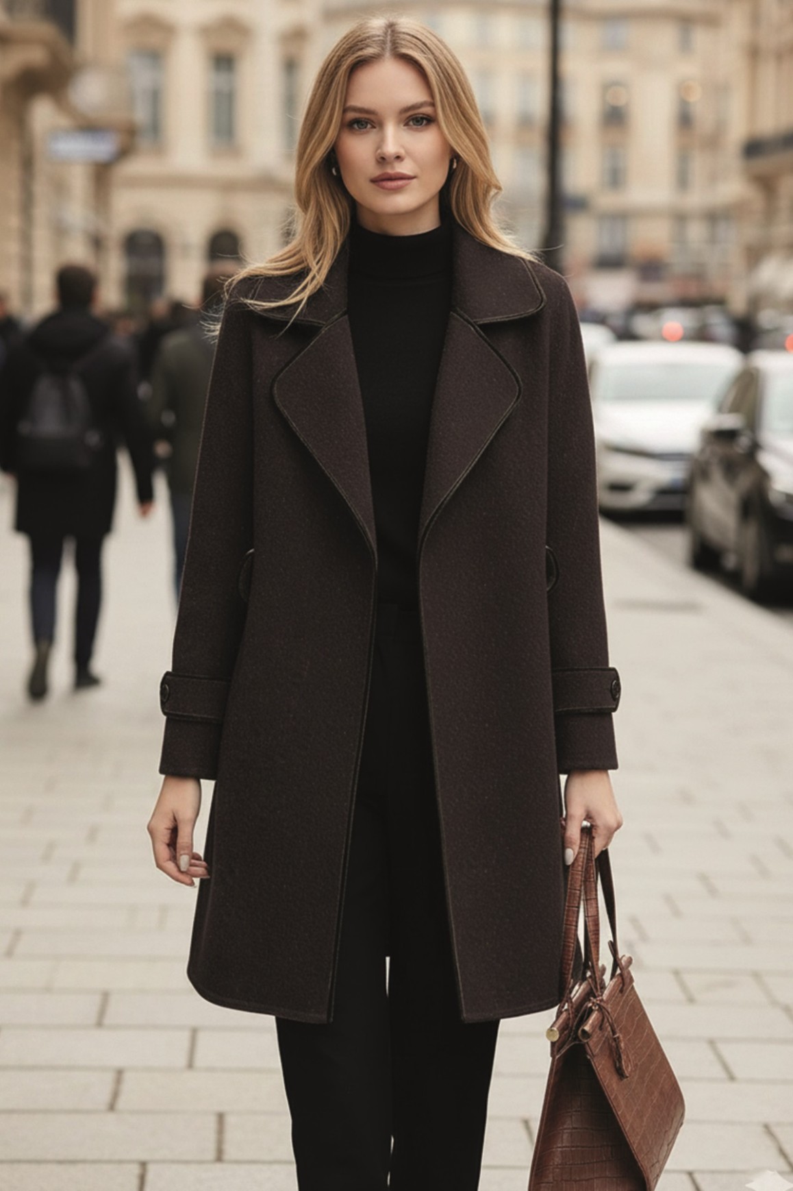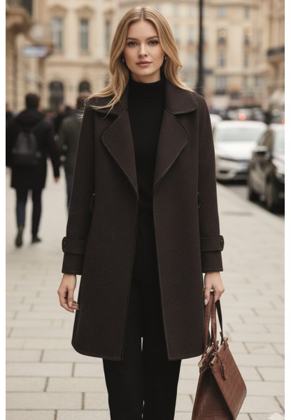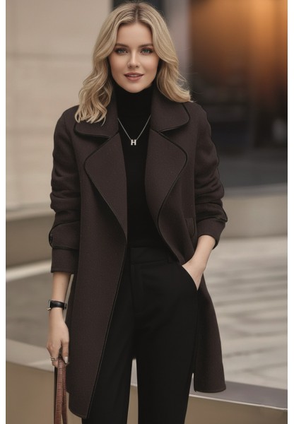 • Kaşe Kadın Şık Yaka Kaban ve Kemer