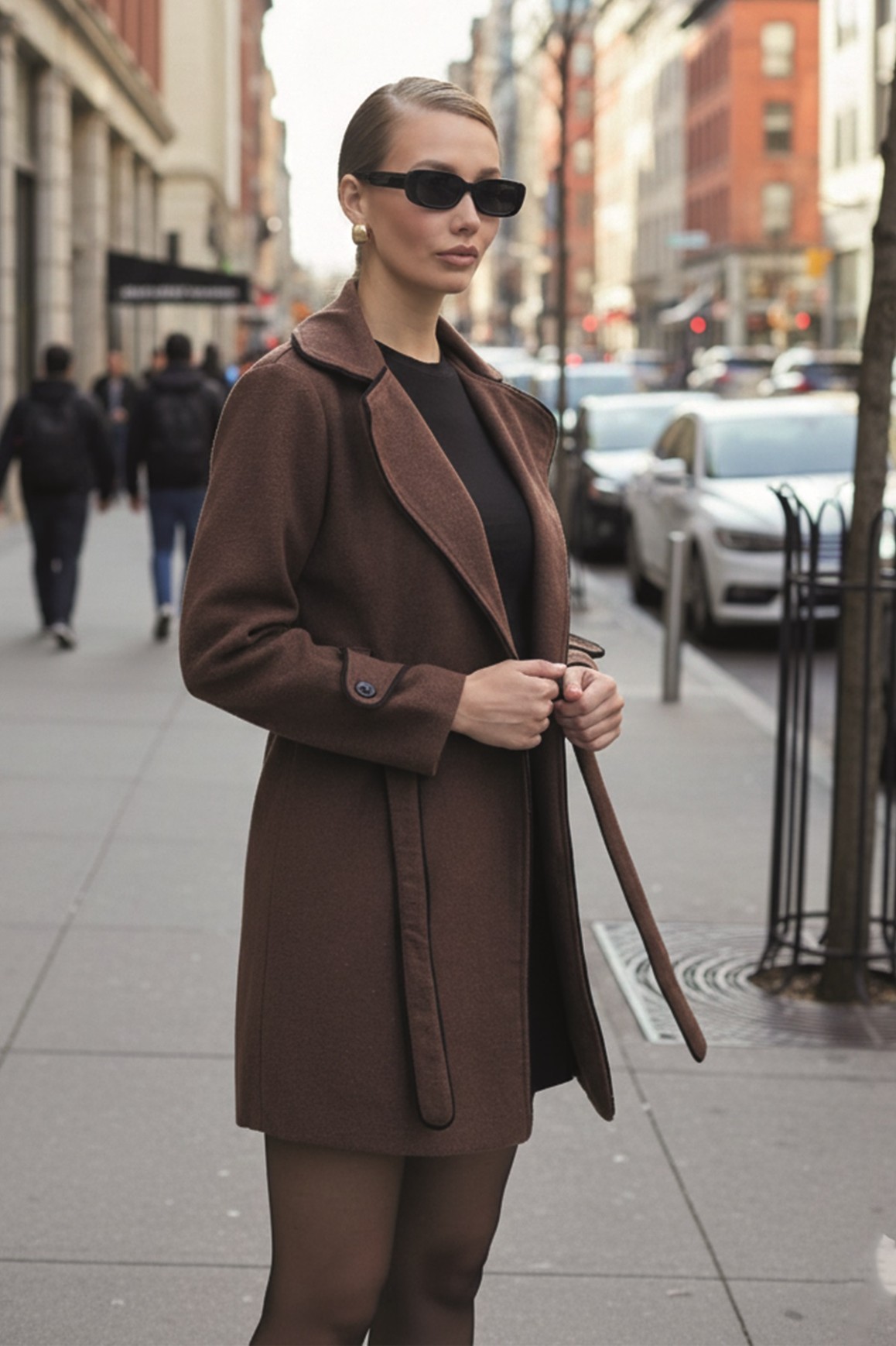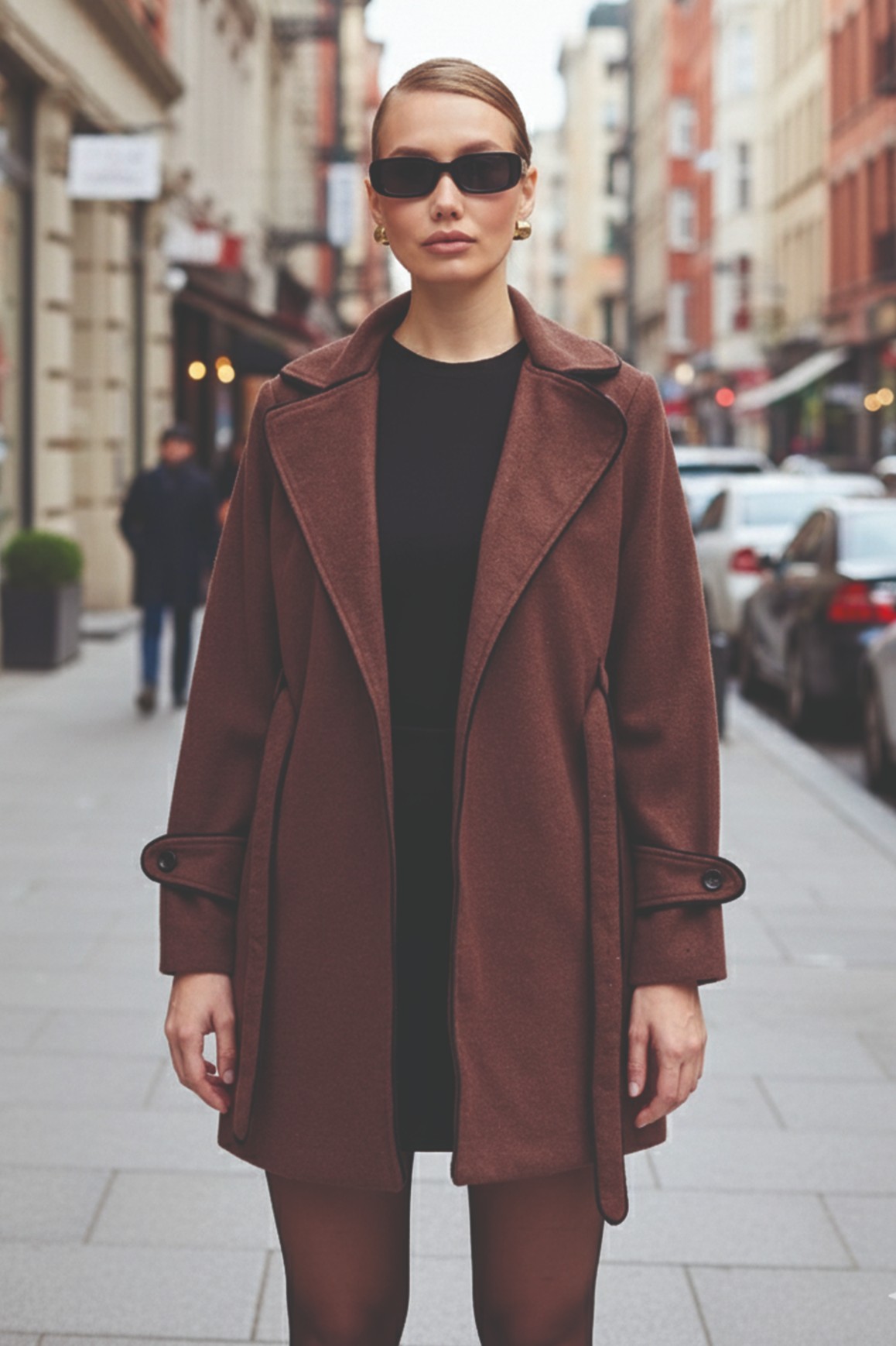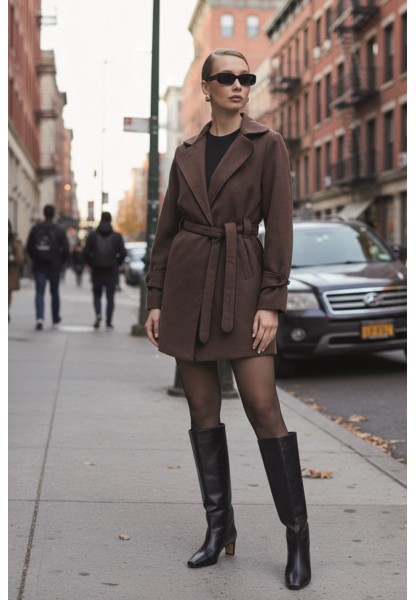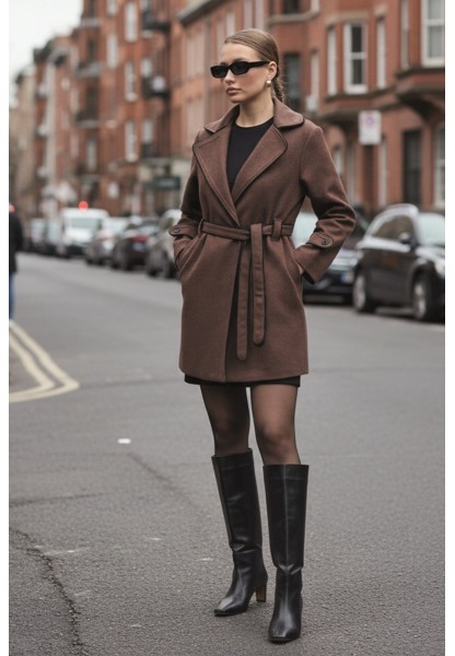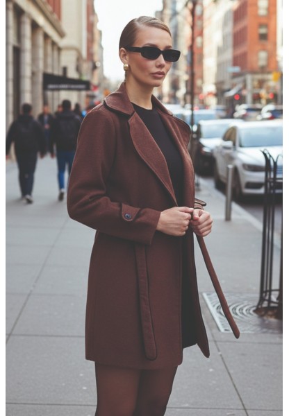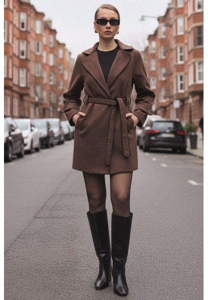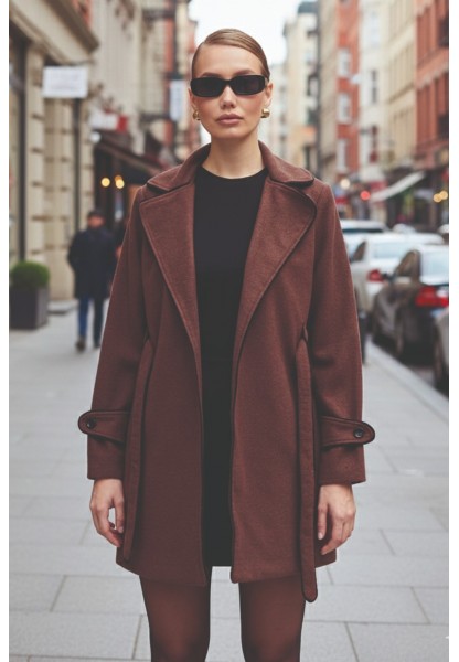 • Kaşe Kadın Şık Yaka Kaban ve Kemer