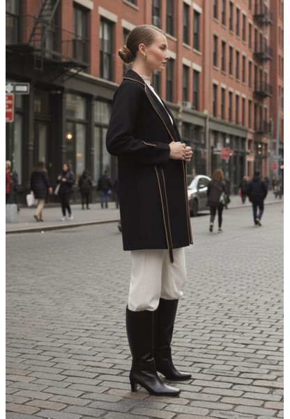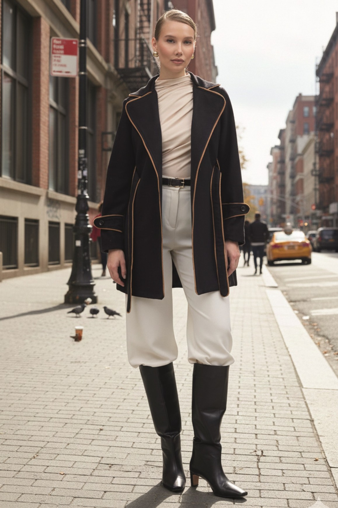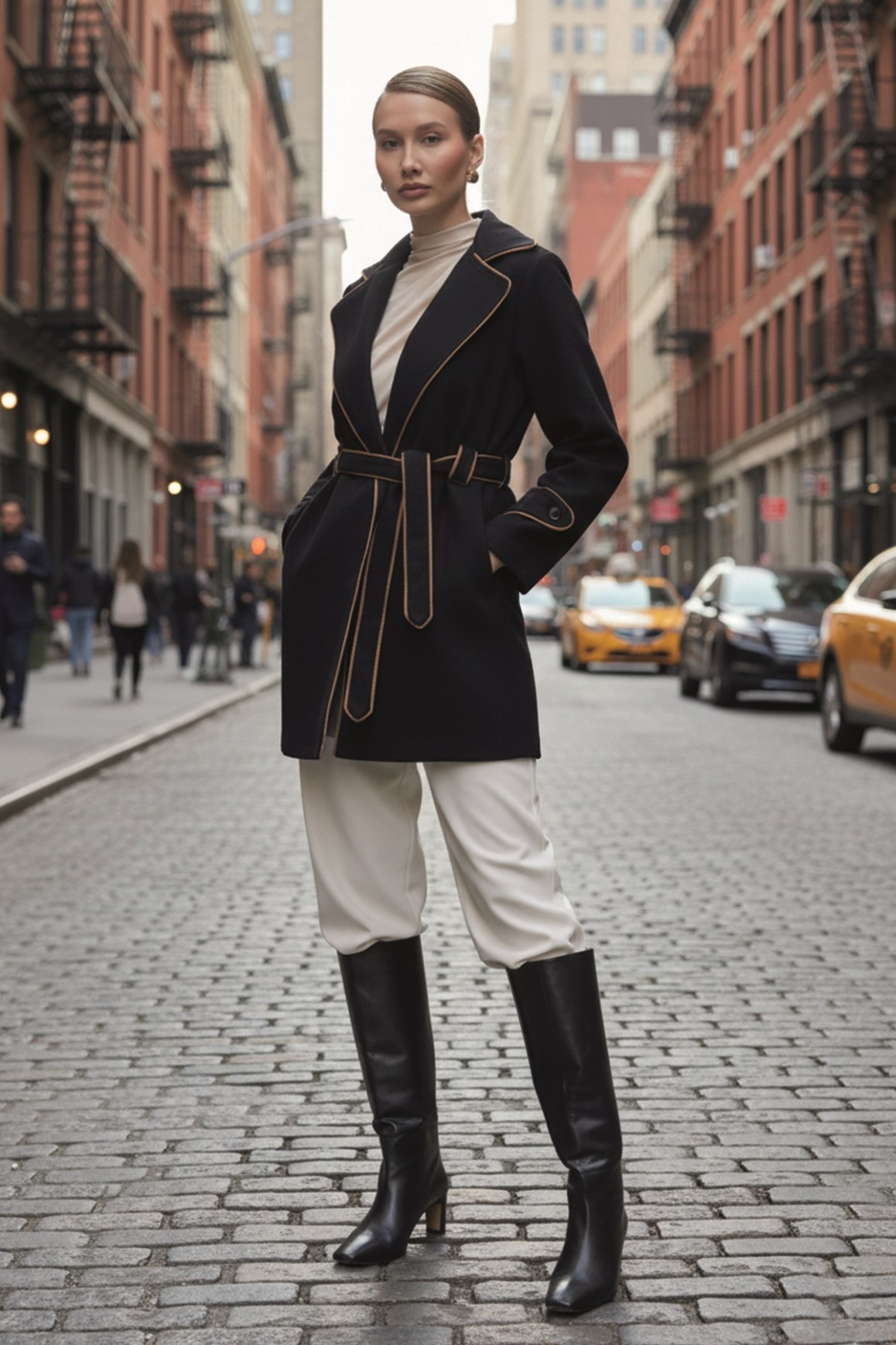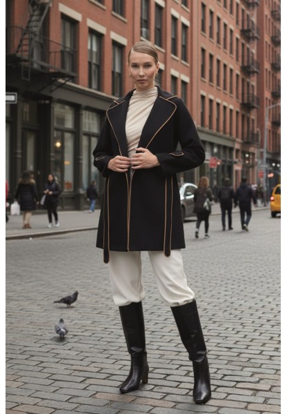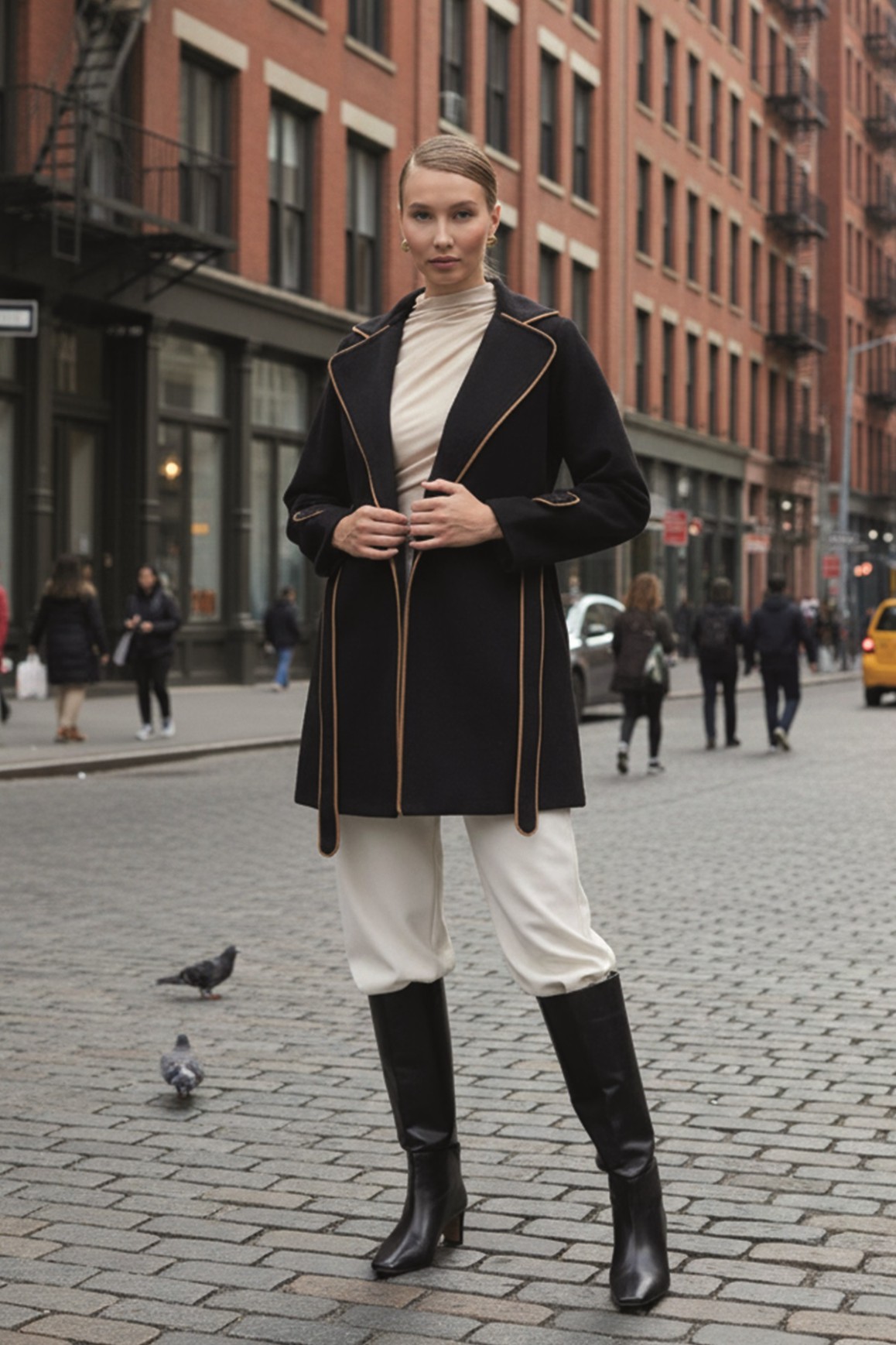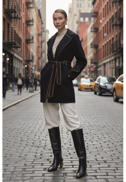 • Kaşe Kadın Şık Yaka Kaban ve Kemer
