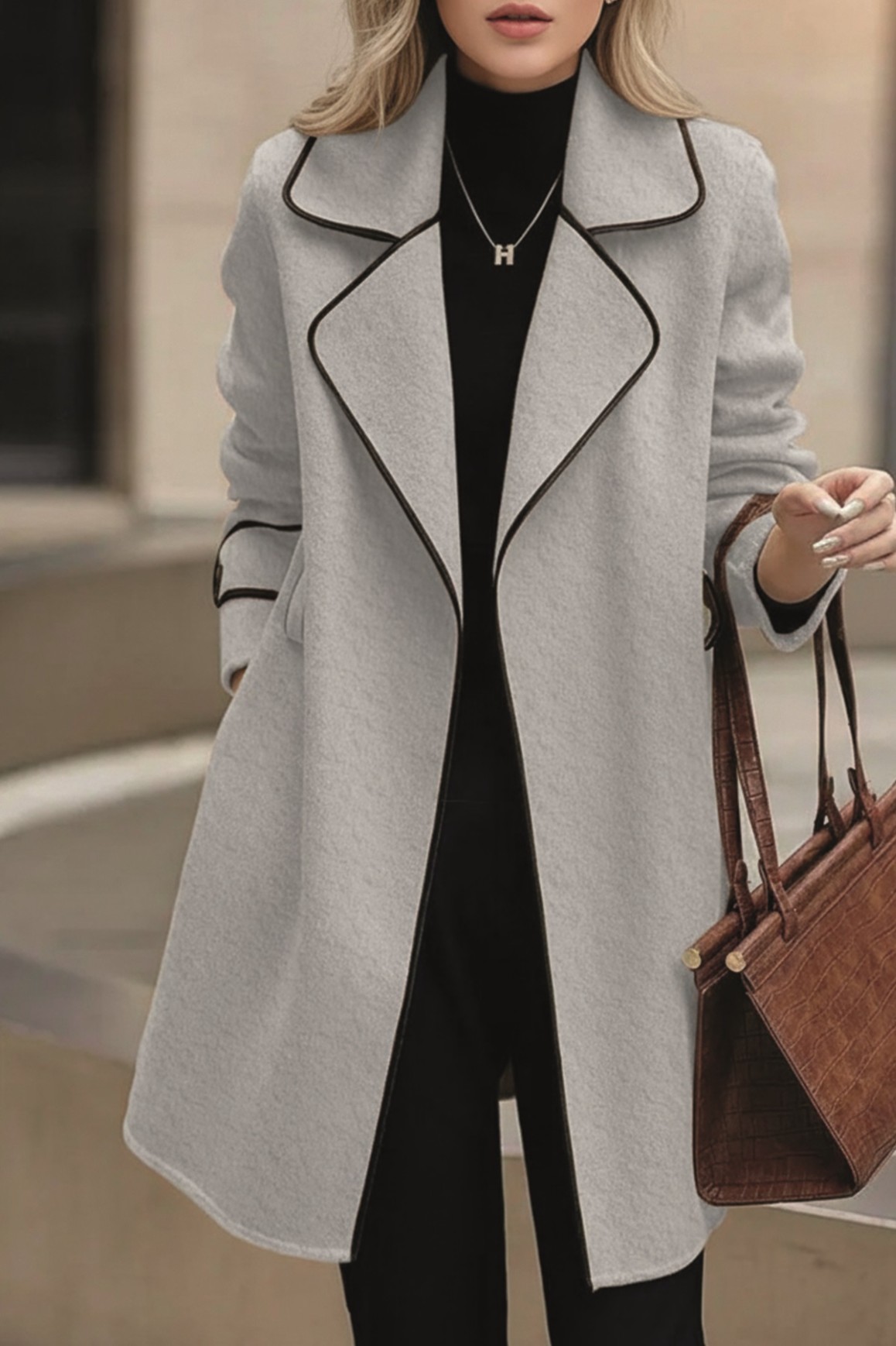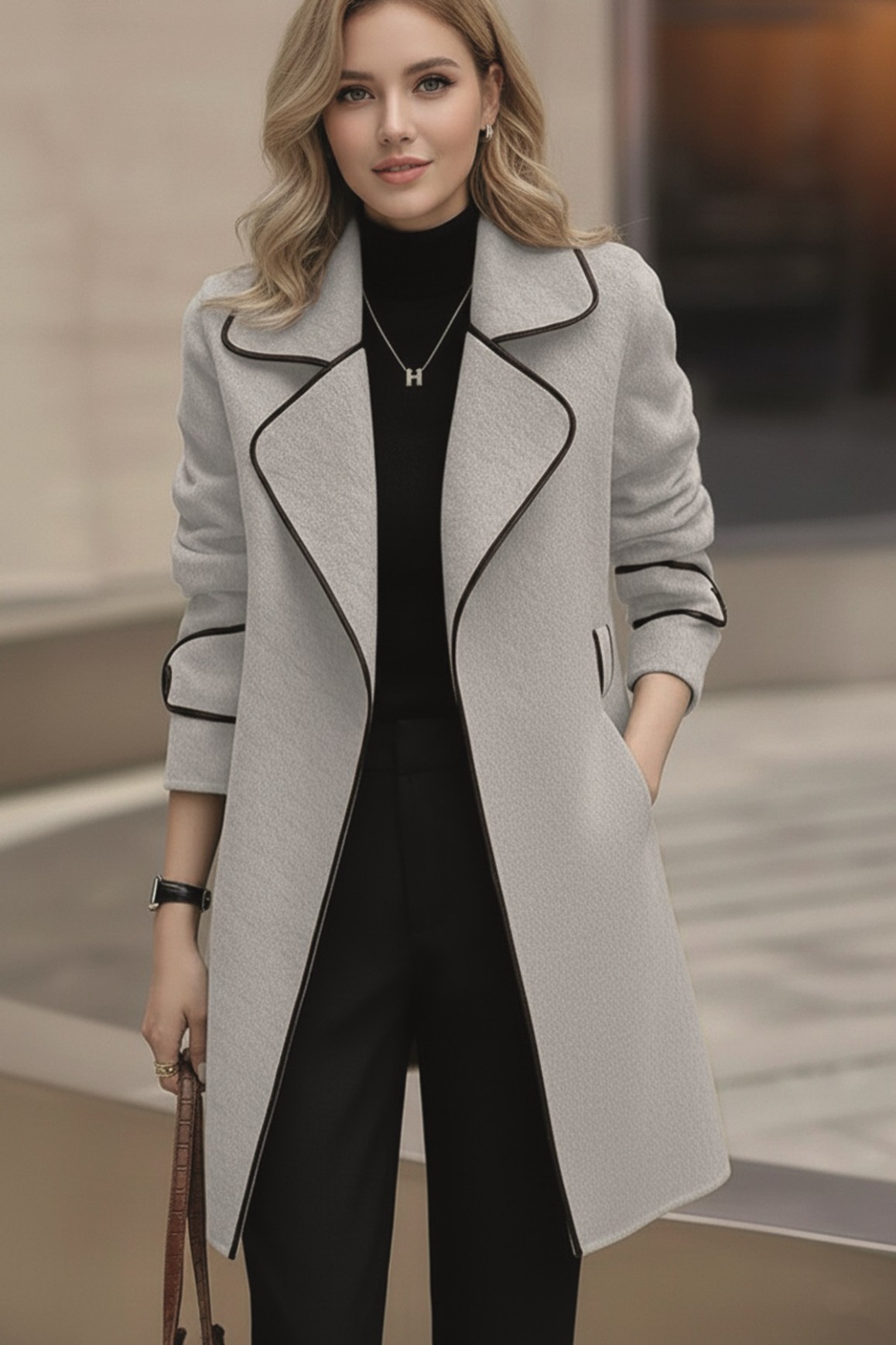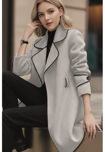 • Kaşe Kadın Şık Yaka Kaban ve Kemer