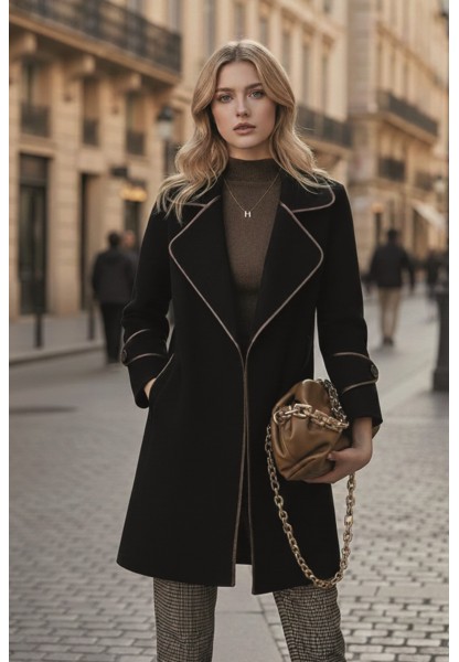 • Kaşe Kadın Şık Yaka Kaban ve Kemer