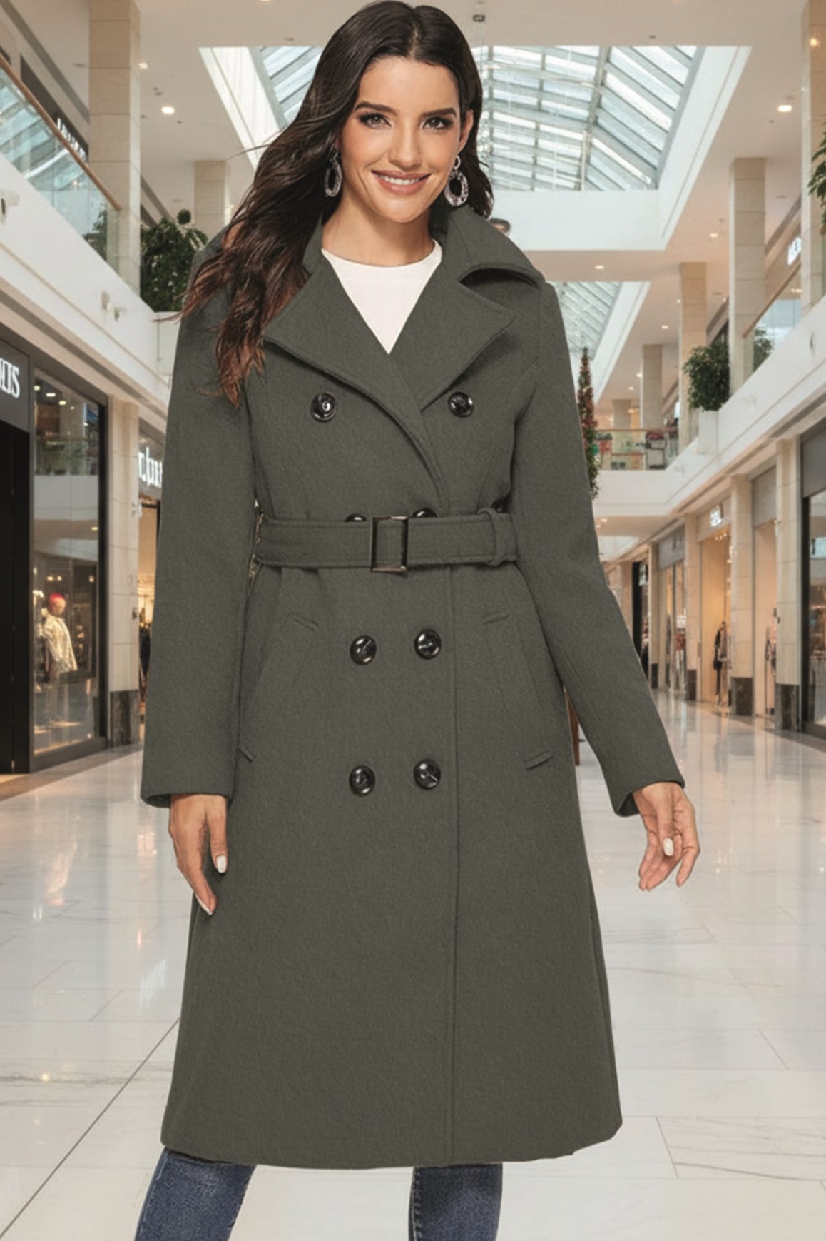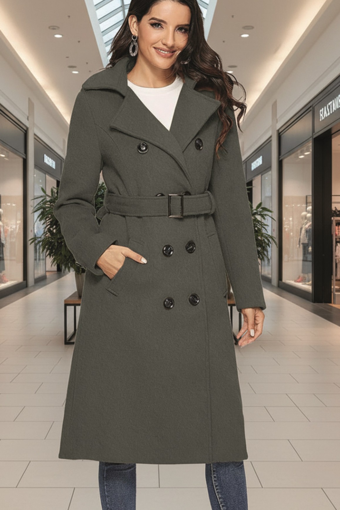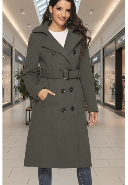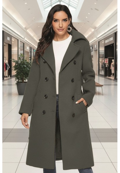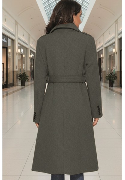 • Kemer Detaylı Aksesuarlı Kaşe Kaban