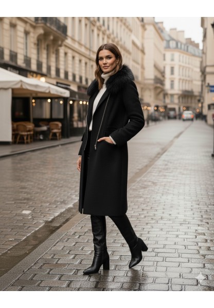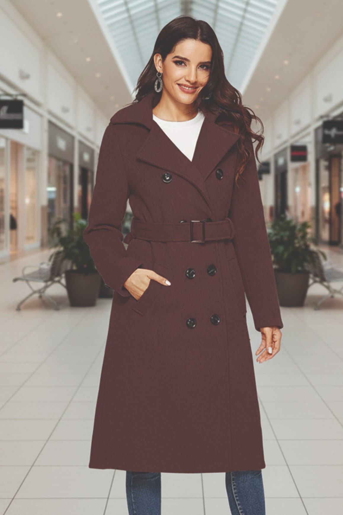 • Kemer Detaylı Aksesuarlı Kaşe Kaban