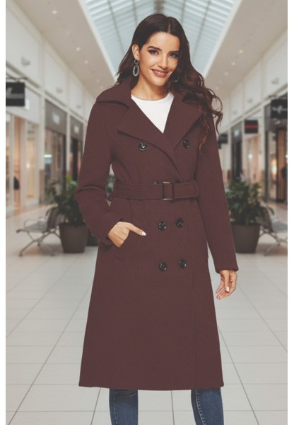 Kemer Detaylı Aksesuarlı Kaşe Kaban