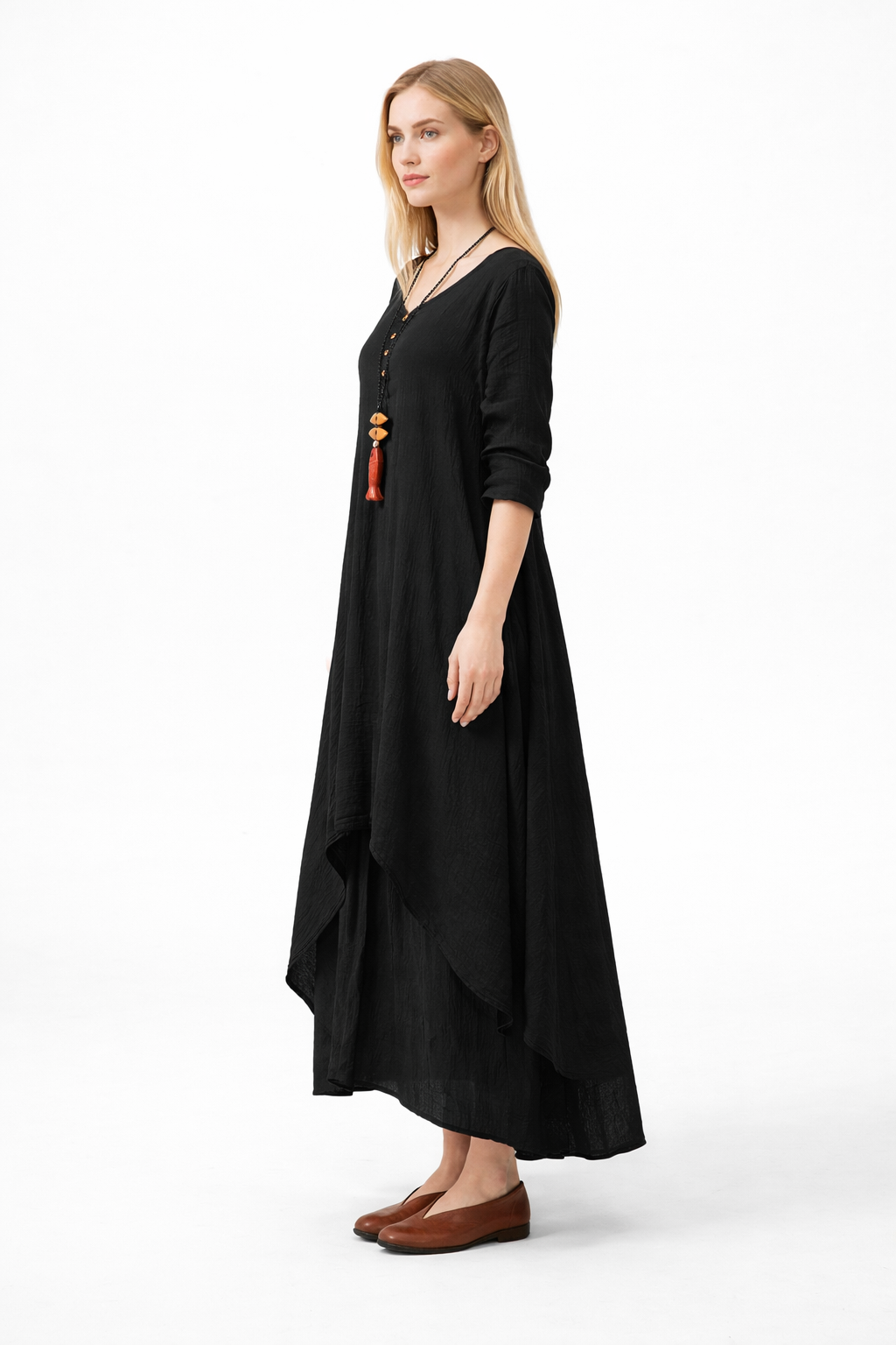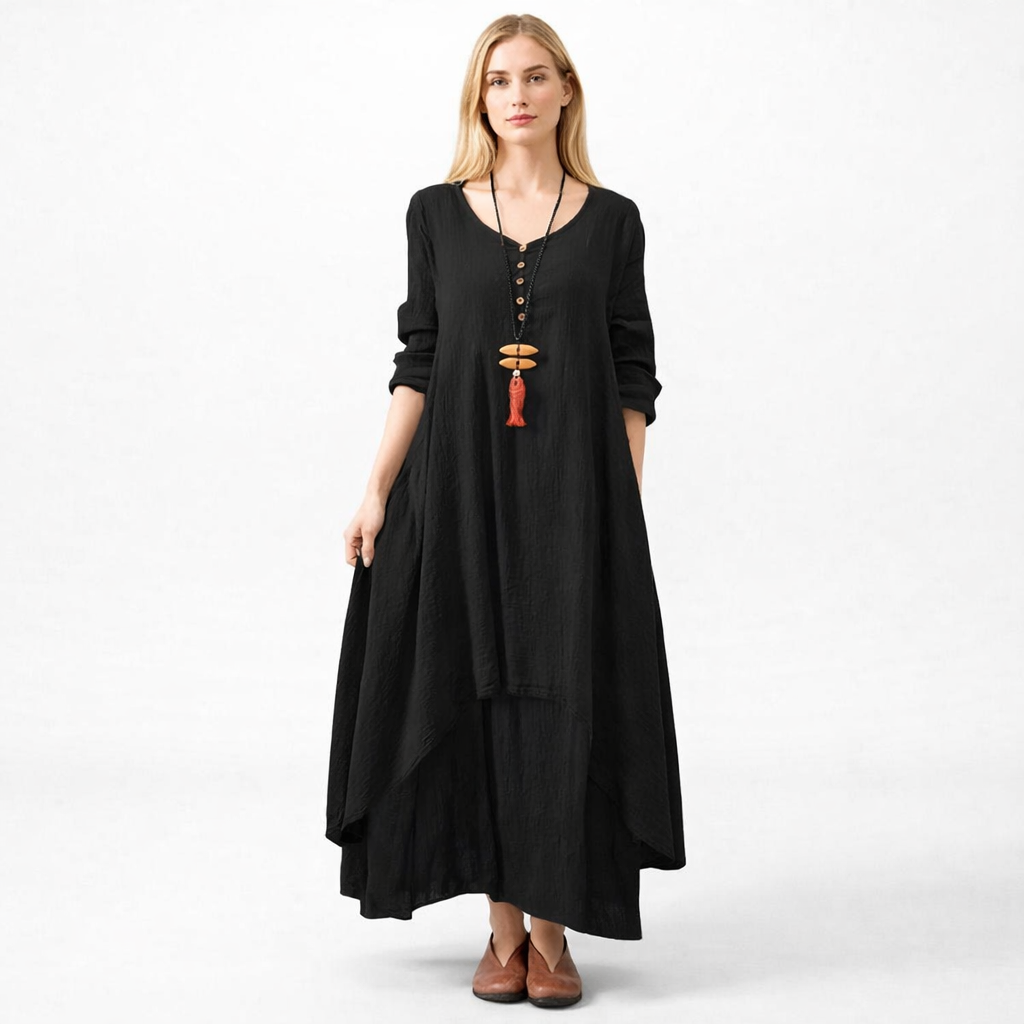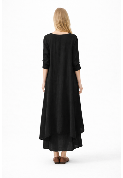 • Keten Günlük Yazlık Salaş Kadın İki Katlı  Elbise