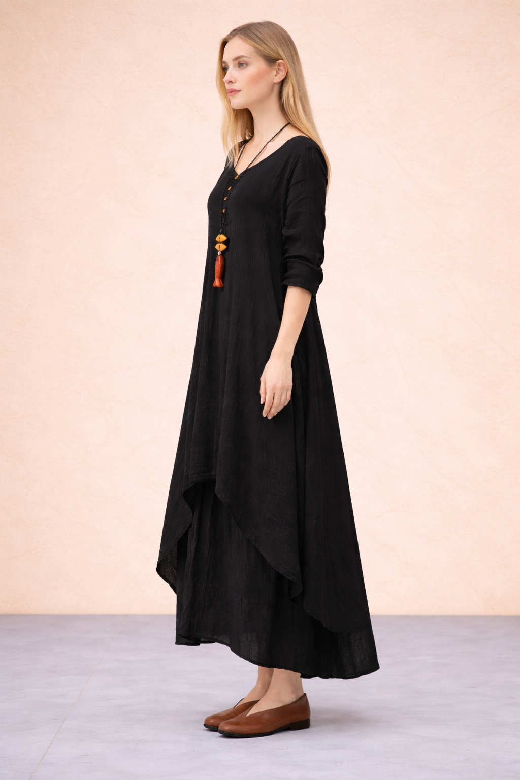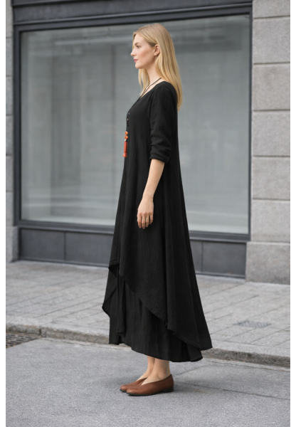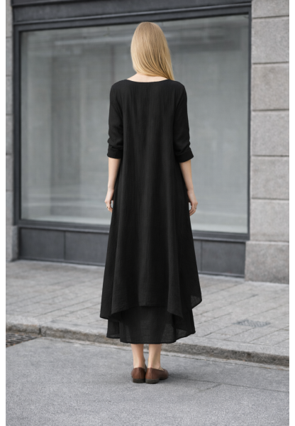 • Keten Günlük Yazlık Salaş Kadın İki Katlı  Elbise