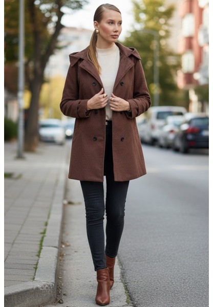• Balık Sırtı Detaylı Kışlık Astarlı Kadın Kaşmir Kaban