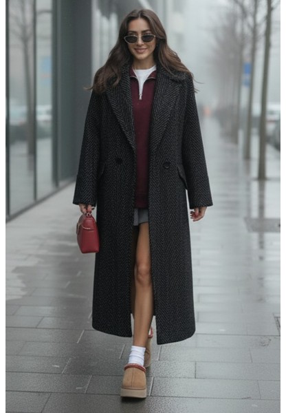 Balık Sırtı Detaylı Kışlık Astarlı Kadın Kaşmir Kaban