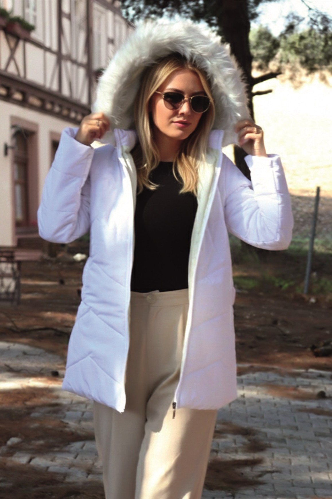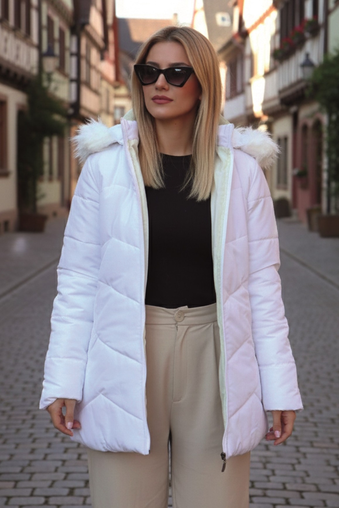 • Kışlık Kürklü Kapüşonlu Kadın Şişme Mont