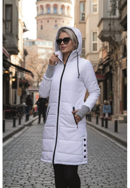 • Kışlık Kapüşonlu Kadın Uzun Şişme Mont
