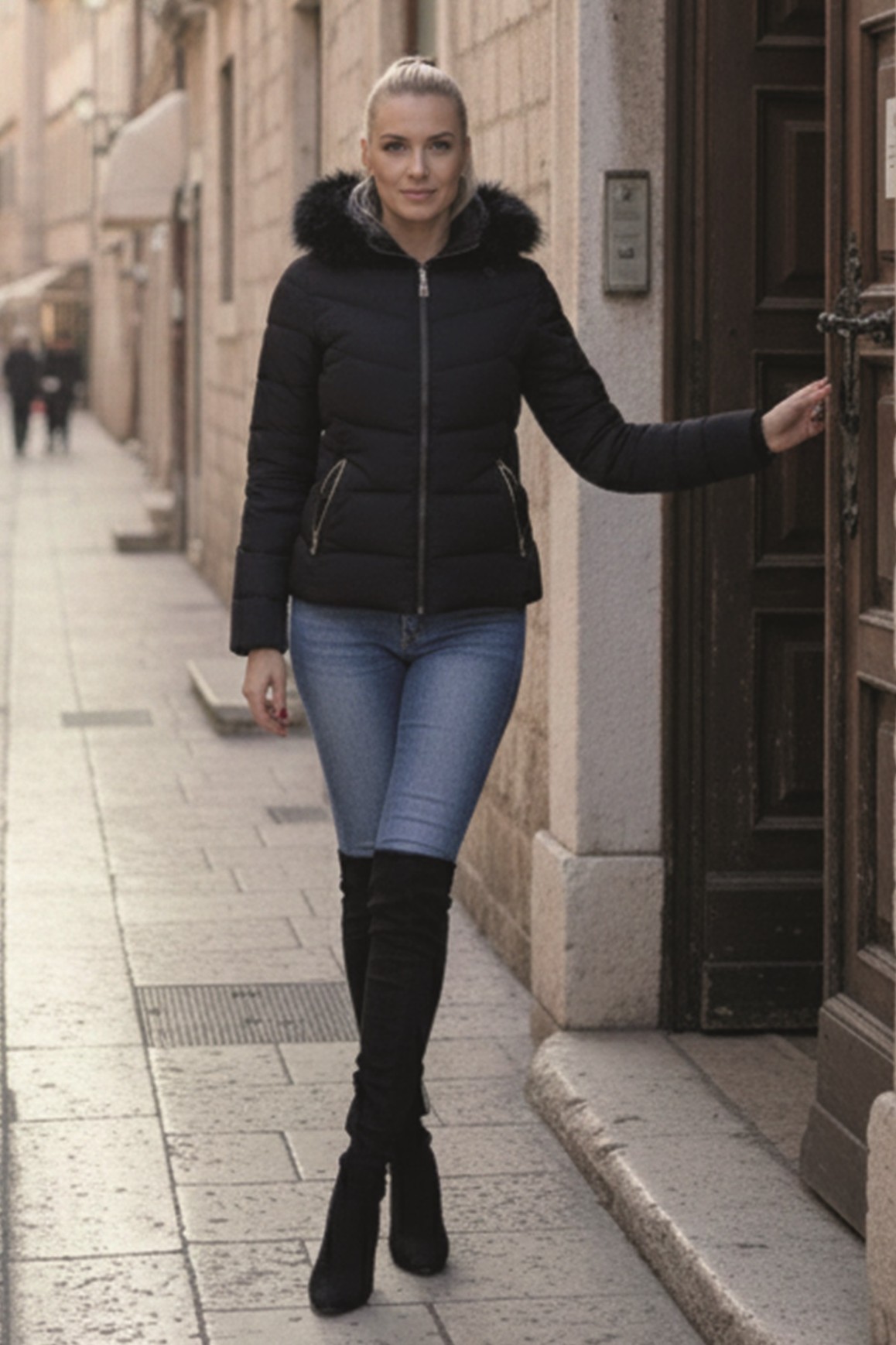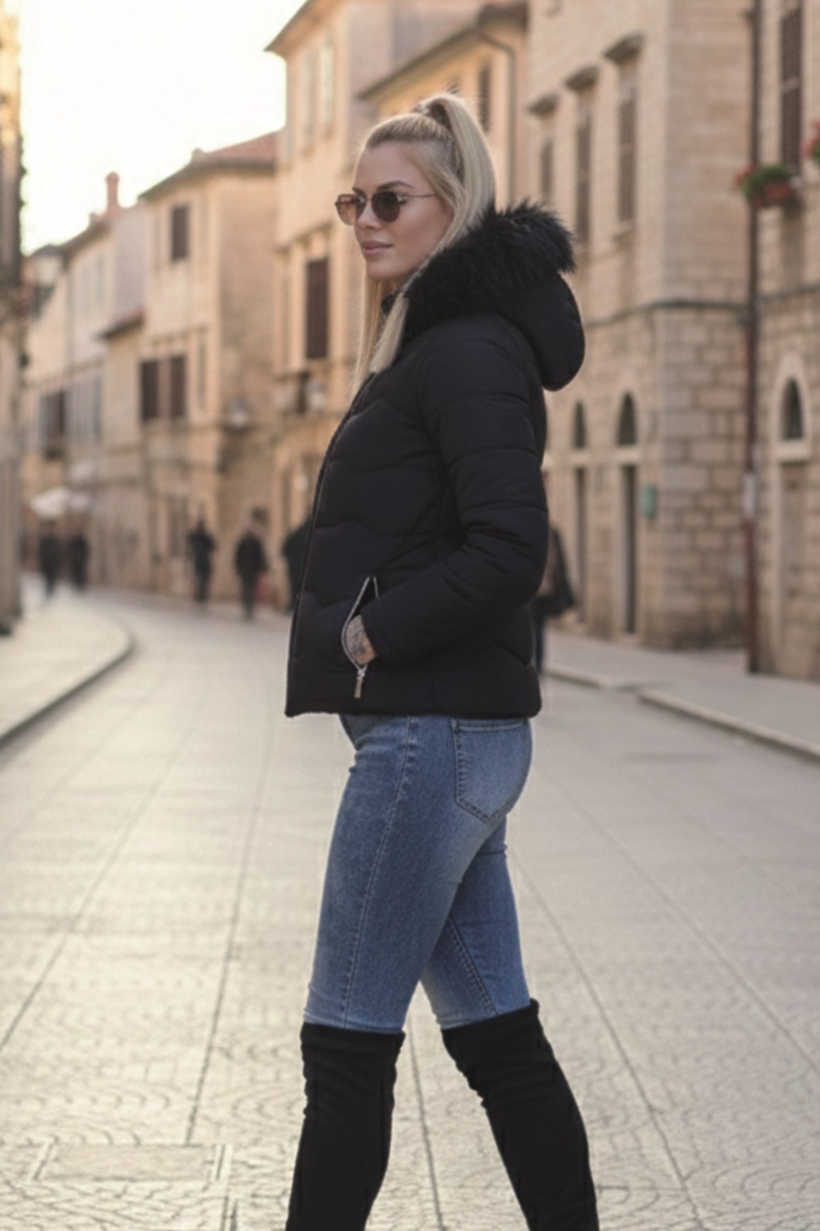 • Kışlık Kapüşonlu Kürklü Şık Şişme Kadın Mont