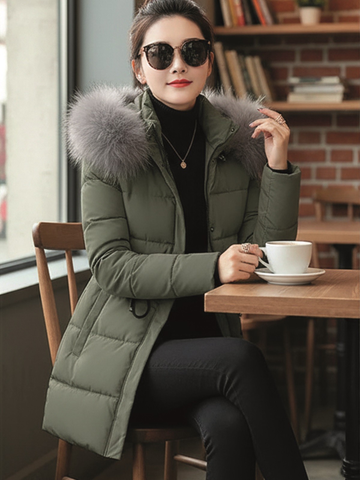 • Kışlık Kürk Detaylı Orta Boy Kadın Şişme Mont co122haki2